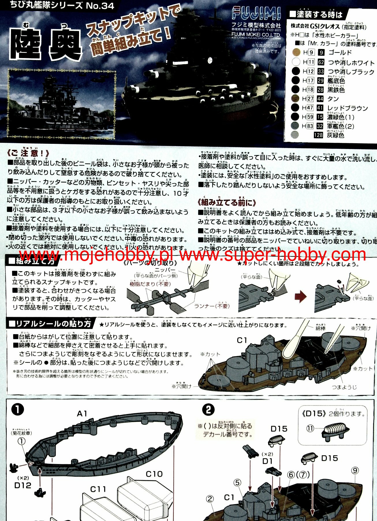 Mutsu był japońskim pancernikiem pod którego stępkę położono w 1918 r., wodowano w maju 1920 r., a wcielono do służby w Japońskiej Cesarskiej Marynarce Wojennej w listopadzie 1921 roku. Długość okrętu wynosiła 224 m, szerokość 34 m, a wyporność pełna 42.800 ton. Prędkość maksymalna pancernika Mutsu oscylowała wokół 25-26 węzłów. Główne uzbrojenie w chwili wodowania stanowiło 8 dział 410 mm w czterech wieżach po dwie armaty, a uzbrojenie dodatkowe to przede wszystkim 20 dział 140 mm. Mutsu był drugim i ostatnim pancernikiem typu Nagato. Typ Nagato był pierwszą serią pancerników, którego artyleria główna przekroczyła kaliber 400 mm. W okresie międzywojennym Mutsu był dwukrotnie modernizowany, które to przebudowy doprowadziły do usunięcia przedniego komina, daleko idącej zmiany przedniej nadbudówki, zainstalowaniu nowego systemu kierowania ognia oraz zmianie de facto całej maszynowni. Dodano także katapulty dla wodnosamolotów. W czasie II wojny światowej Mutsu nie wziął intensywnego udziału w walkach. W toku bitwy o Midway (czerwiec 1942 r.) wchodził w skład Sił Głównych, ale nie wziął właściwe żadnego udziału w boju. Na przełomie lat 1942/1943 pływał w rejonie Guadalcanal, ale znowu nie wprowadzono go do akcji. W dniu 8 czerwca 1943 roku, zapewne z powodu zaniedbań załogi, pancernikiem Mutsu wstrząsnęła potężna eksplozja związana z załadunkiem na pokład amunicji do artylerii głównej, która szybko doprowadziła do jego zatopienia. Co oprócz modelu będę potrzebować do jego sklejenia?