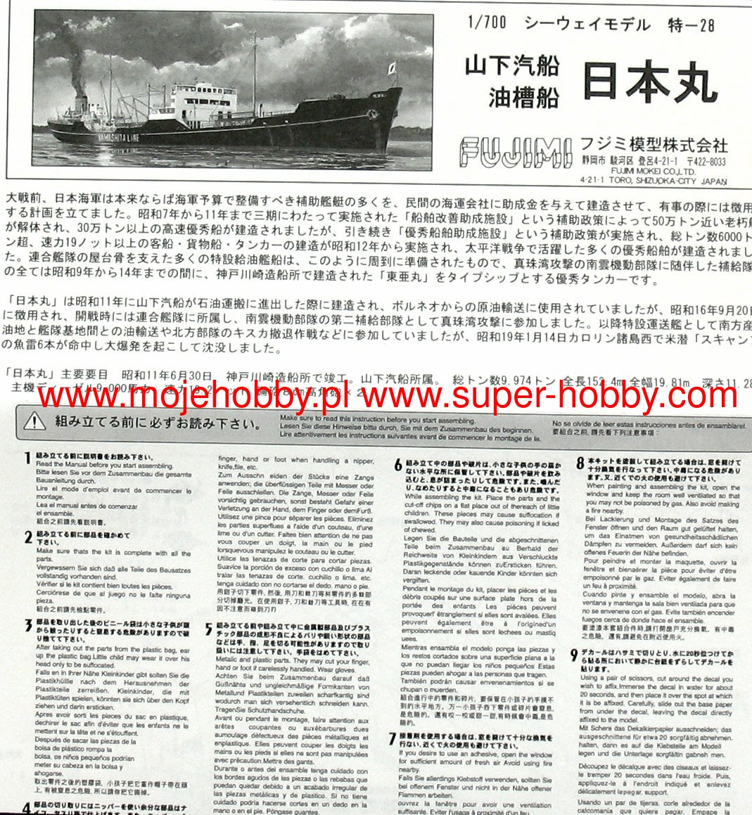 Nippon Maru był japońskim tankowcem z okresu międzywojennego oraz Ii wojny światowej. Stępkę pod tę jednostkę położono w 1935 r., wodowano w kwietniu 1936 r., a wcielono do służby w czerwcu 1936 roku. Długość całkowita statku w chwili wodowania wynosiła ok. 152 m, szerokość ok. 20 m, a faktyczna wyporność ok. 10.000 ton. Prędkość maksymalna tankowca dochodziła do 19-20 węzłów. Nippon Maru był jednym z tankowców klasy Tatekawa Maru, który to klasa wraz z kilkoma innymi klasami tankowców jest określana w języku angielskim jako Kawasaki-type oiler. Prezentowany tankowiec został zbudowany w stoczni Kawasaki w mieście Kobe, a jego pierwotnym użytkownikiem były japońskie linie żeglugowe Yamashita Line. Warto dodać, że klasa tankowców Tatekawa Maru była konstrukcyjnie bardzo zbliżona do chronologicznie młodszej klasy Toa Maru i różniła się od niej nielicznymi detalami konstrukcyjnymi. Niewątpliwie Nippon Maru był tankowcem w pełni oceanicznym, zdolnym do dalekiej żeglugi i jak na połowę lat 30. XX wiek był jednostką nowoczesną. Tankowiec Nippon Maru został w II połowie 1941 r. zarekwirowany przez japońską marynarkę wojenną i zaklasyfikowany jako jednostka pomocnicza. Wszedł do służby oficjalnie w listopadzie 1941 roku. Od maja 1943 r. tankowiec Nippon Maru działał na wodach południowego Pacyfiku ,a w dniu 14 stycznia 1944 r. został zatopiony przez amerykański okręt podwodny USS Scamp. Co oprócz modelu będę potrzebować do jego sklejenia?
