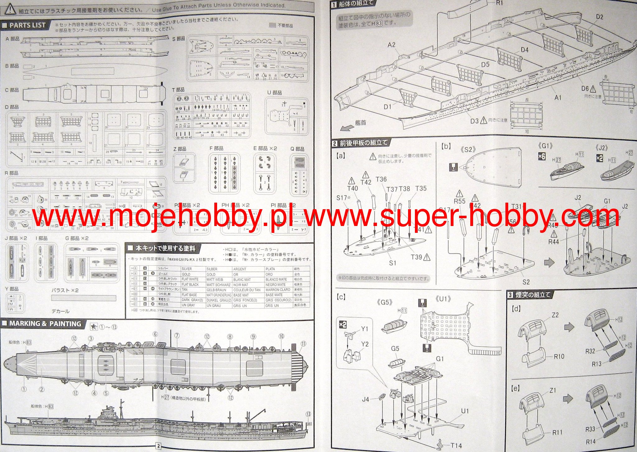 Shokaku (jap. Lecący Żuraw) był japońskim lotniskowcem pod którego stępkę położono w 1937 r., wodowano w czerwcu 1939 r., a wcielono do służby w Japońskiej Cesarskiej Marynarce Wojennej w sierpniu 1941 roku. Długość okrętu wynosiła 257,5 m, szerokość 26 m, a wyporność pełna 32.100 ton. Prędkość maksymalna lotniskowca Shokaku oscylowała wokół 34 węzłów, a jego główne uzbrojenie stanowiły 84 samoloty pokładowe. Shokaku wraz ze swoim bliźniaczym okrętem Zuikaku został zatwierdzony do budowy w ramach planu rozbudowy floty "Zero 3" i "Zero 4, które zakładał znaczne wzmocnienie potencjału ofensywnego japońskiej marynarki wojennej. Oba lotniskowce były też pierwszymi po 1918 roku, który powstawały bez jakichkolwiek ograniczeń wynikających z traktatu waszyngtońskiego. Przy projektowaniu Shokaku wykorzystano dotychczasowe doświadczenia z eksploatacji innych lotniskowców przede wszystkim okrętów Hiryu i Soryu. Wstępnie planowano, aby nowy lotniskowiec osiągał prędkość aż 37 węzłów oraz zabierał na pokład 96 samolotów, ale w toku prac wymagania te nieznacznie obniżono. Dopracowano też kadłub pod względem hydrodynamicznym, dodając na dziobie tzw. gruszkę Taylora. Podobnie jednak, jak na innych lotniskowcach japońskich tego czasu drugorzędnie potraktowano opancerzenie zwłaszcza pokładu lotniczego. W toku II wojny światowej Shokaku brał udział w ataku na Pearl Harbor w grudniu 1941 roku. Na początku 1942 r. wziął udział w rajdzie japońskiej marynarki wojennej na Ocean Indyjski, a kilka miesięcy później walczył w bitwie na Morzu Koralowym. W związku z poniesionymi tam uszkodzeniami został wycofany do stoczni remontowej, co uniemożliwiło mu wzięcie udziału w bitwie o Midway (czerwiec 1942 r.). W II połowie 1942 roku Shokaku walczył także w bitwie koło wysp Santa Cruz oraz koło Wysp Salomona. Shokaku został zatopiony przez amerykański okręt podwodny USS Cavalla w czasie bitwy na Morzu Filipińskim w czerwcu 1944 roku. Co oprócz modelu będę potrzebować do jego sklejenia?