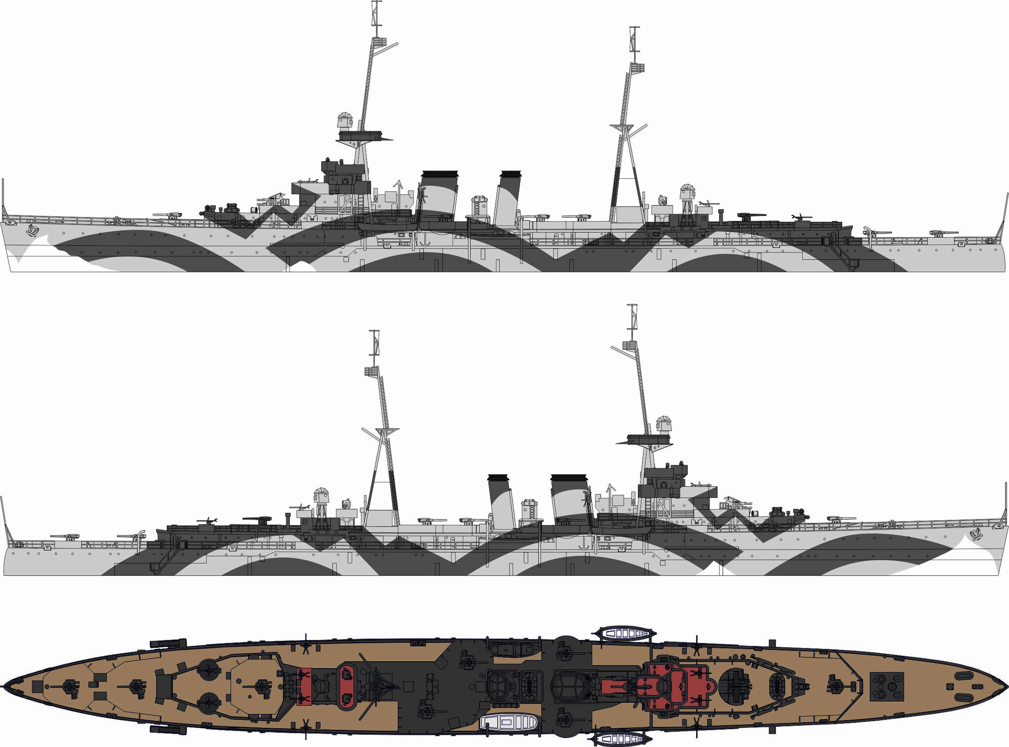 HMS Coventry (D43) was a British light cruiser, the keel of which was laid in August 1916, launched in July 1917, and entered service with the Royal Navy in February 1918. The total length of the ship at the time of launching was 140 m, width 13.3 m, with a displacement of about 4,200 tons. In turn, the maximum speed was up to 29 knots. At the time of launching, the ship was armed with: 5 152 mm Mark XII guns, 2 single 76 mm anti-aircraft guns, 2 40 mm guns and 8 533 mm torpedo tubes. HMS Coventry (D43) was one of the 28 C class cruisers. Units of this type were built with the idea of escorting larger ships of the Royal Navy in mind, and their main task was to protect them against German torpedo boats and destroyers, and especially against the threat of a torpedo attack. They have also been adapted primarily to operate in the North Sea basin. For this reason, they were characterized by relatively strong armament for this class of ships, good seaworthiness, good armor, but limited comfort of the crews and average maximum speed. HMS Coventry (D43), due to its late entry into service, took a very limited part in the First World War. In 1919, he operated in the Baltic Sea, supporting the Whites in the Russian Civil War. In the 1920s, it operated mainly in the Mediterranean, and in the mid-1930s it underwent a major renovation and reconstruction, which turned it into an anti-aircraft cruiser. anti-aircraft cruiser). After this conversion, the unit was armed mainly with 10 102 mm guns. In the first meats of World War II HMS Coventry (D43) served in the Home Fleet, but was dispatched to the Mediterranean Sea in 1940. In November of that year, the cruiser took part in the Battle of Cape Spartivento, and in 1941 it operated in the area of Crete, where it was damaged. The unit sank in September 1942 as a result of a German air attack north of Alexandria.