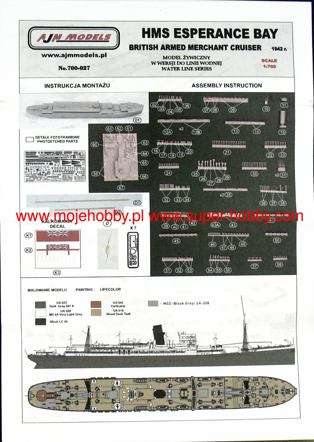 HMS Esperance Bay was a British passenger transport vessel, converted into an Armed Merchant Cruiser, which was launched in 1921 and commissioned in the Royal Navy in late 1939. The displacement of the vessel did not exceed 14,300 tons, and the maximum speed - 15 knots. It was armed with 7 152 mm guns and 2 76 mm guns. HMS Esperance Bay, or rather RMS Esperance Bay, was originally called Hobson's Bay, but it was changed in 1936. The vessel was constructed at the Vickers shipyard in Barrow-in-Furness for one of the British shipping lines. The vessel was requisitioned in December 1939 by the Royal Navy. HMS Esperance Bay was quickly rebuilt and armed. From December 1939 to April 1940, she operated in the South Atlantic, and from May to October 1940, she served with the Halifax Escort Force. However, from November 1940 to August 1941, it operated in the Central Atlantic. It is worth adding that in May 1941 she indirectly participated in the tracking and sinking of the battleship Bismarck. From November 1941, she served primarily as an armed transport ship, intended especially for the transport of the army. The unit survived World War II and was not scrapped until 1955.