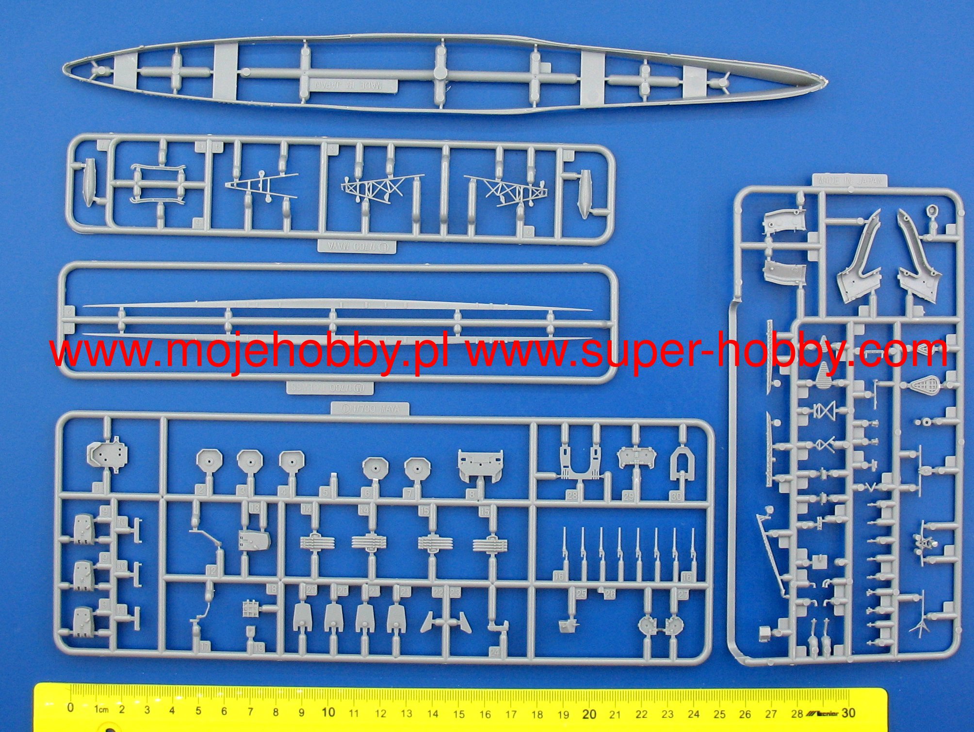 Maya był japońskim ciężkim krążownikiem pod którego stępkę położono w 1928 r., wodowano w listopadzie 1930 r., a wcielono do służby w Japońskiej Cesarskiej Marynarce Wojennej w czerwcu 1932 roku. Długość okrętu w chwili wodowania wynosiła 203 m, szerokość 18,3 m, a faktyczna wyporność pełna, po modernizacjach 15.500 ton. Prędkość maksymalna krążownika Maya dochodziła do 35,5 węzłów. Główne uzbrojenie w chwili wodowania stanowiło 10 dział 203 mm w pięciu wieżach po dwie armaty, a uzbrojenie dodatkowe to m.in.: 4 armaty 120 mm oraz 8 wyrzutni torpedowych kal. 610 mm, później liczbę tę podniesioną do aż 16 wyrzutni! Maya był trzecim krążownikiem typu Takao. Krążowniki tego typu budowano, respektując ograniczenia wynikające z rozbrojeniowego traktatu waszyngtońskiego podpisanego przez rząd w Tokio w 1922 roku. Przy okrętach tego typu bardzo wyraźnie oparto się na projekcie krążowników klasy Myoko. Zmiany dotyczyły: zastosowania nowych armat artylerii głównej, poprawie opancerzenia, rozbudowie nadbudówki dziobowej oraz lepszemu rozplanowaniu uzbrojenia torpedowego. Położono też nacisk na wysoką prędkość maksymalną. Dążenie do tak skrajnych celów doprowadziło do powstania okrętów co prawda o potężnym uzbrojeniu artyleryjskim i torpedowym, świetnej prędkości, ale o niższym niż zakładano zasięgu, przeciętnej dzielności morskiej oraz cechujących się sporymi problemami ze statecznością. Późniejsze modernizacje na dwóch pierwszych okrętach tego typu częściowo zniwelowały te minusy, ale ich całkowicie nie wyeliminowały. Szlak bojowy krążownika Maya w II wojnie światowej rozpoczął się już w grudniu 1941 roku od wspierania japońskich desantów na Filipinach. Następnie do marca 1942 roku Maya walczył w rejonie Holenderskich Indii Wschodnich. W lecie uczestniczył w akcji zajmowania Aleutów, a później walczył w rejonie Wysp Salomona. W marcu 1943 wziął udział w bitwie koło Wysp Komandorskich. W lecie 1944 roku walczył w bitwie na Morzu Filipińskim, ale pomimo wysokich strat japońskich przetrwał ją. Krążownik Maya został zatopiony w toku walk w Zatoce Leyte w dniu 23 października 1944 roku w wyniku ataku torpedowego okrętu podwodnego USS Dace. Co oprócz modelu będę potrzebować do jego sklejenia?
