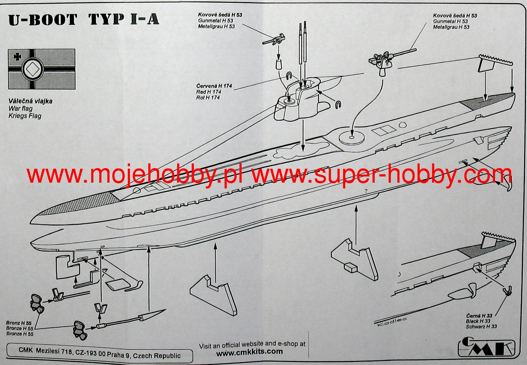 U-booty Type I były niemieckimi okrętami podwodnymi, których budowę rozpoczęto w 1936 roku. Długość jednostek tego typu wynosiła 72,5 m, szerokość 6,2 m, a wyporność podwodna 980 ton. Prędkość maksymalna U-bootów Type I na powierzchni wynosiła do 20 w., a maksymalna prędkość podwodna 9 węzłów. Uzbrojenie główne stanowiło 6 wyrzutni torpedowych kal. 533 mm: 4 na dziobie i 2 na rufie z łącznie 14 torpedami lub 28 minami zabieranymi na pokład okrętu. Uzbrojenie dodatkowe to 1 działo kal. 105 mm oraz 1 działo przeciwlotnicze kal. 20 mm. W sumie powstały jedynie 3 okręty tego typu. U-booty Type I powstały jako próba stworzenia oceanicznych okrętów podwodnych dla niemieckiej marynarki wojennej, po dojściu do władzy Adolfa Hitlera, których ta posiadać nie mogła w związku z restrykcjami narzuconymi przez traktat wersalski z 1919 roku. Pierwsza jednostka tej klasy były budowana w stoczniach holenderskich, ale podlegających niemieckiej firmie działającej na terenie tego kraju. Miała służyć w marynarce hiszpańskiej, ale ostatecznie trafiła do floty tureckiej pod nazwą „Gur”. Pozostałe dwa okręty tego typu (U-25 i U-26) powstały już na terenie III Rzeszy, w stoczni w Bremie, ale posiadały wiele wad: były niestateczne, posiadały problemy z manewrowaniem w zanurzeniu oraz bardzo powoli się zanurzały. Oba okręty po niewielkich sukcesach na początkowym etapie II wojny światowej, zostały utracone przez Kriegsmarine w 1940 roku. Co oprócz modelu będę potrzebować do jego sklejenia?
