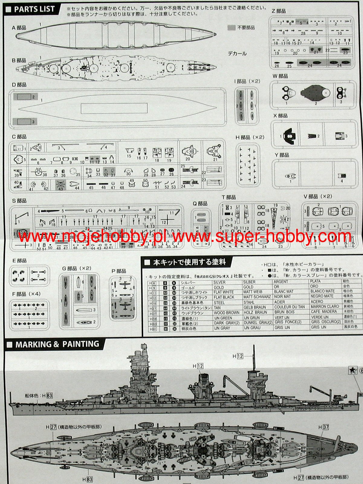 Yamashiro był japońskim pancernikiem pod którego stępkę położono w 1913 r., wodowano w listopadzie 1915 r., a wcielono do służby w Japońskiej Cesarskiej Marynarce Wojennej w marcu 1917 roku. Długość okrętu wynosiła 213 m, szerokość 30,6 m, a wyporność pełna 35.300 ton. Prędkość maksymalna pancernika Yamashiro oscylowała wokół 22-23 węzłów, a po modernizacjach doszła do 25 węzłów. Główne uzbrojenie stanowiło 12 dział 356 mm w sześciu wieżach po dwie armaty, a uzbrojenie dodatkowe to przede wszystkim 16 dział 152 mm umieszczonych w kazamatach. Yamashiro był drugim i ostatnim pancernikiem typu Fuso. W okresie I wojny światowej nie był poddawany istotniejszym modernizacjom, natomiast w latach 1930-1935 poddano go gruntownej przebudowie. Przede wszystkim wydatnie wzmocniono pancerz, zmieniono całą maszynownię (co polepszyło prędkość maksymalną!) oraz zmieniono kształt nadbudówki z mostkiem dowodzenia, która osiągnęła ponad 40 m. wysokości i przypominała kształtem japońską pagodę. Pomimo tych zmian pancernik ciągle był znacznie wolniejszy od innych okrętów liniowych Marynarki Cesarskiej, a jego artyleria główna kalibru 356 mm nie czyniła z niego równorzędnego partnera dla pancerników amerykańskich. Z tych powodów w chwili gdy zaczęła się II wojna światowa był już uważany za okręt raczej przestarzały. Pancernik brał pośredni udział w ataku na Pearl Harbor (grudzień 1941 r.) i odegrał w tej operacji jedynie funkcje pomocnicze, a w maju 1942 roku walczył w rejonie Wysp Aleuckich. W latach 1943-1944 stacjonował przede wszystkim na wyspach macierzystych, ale wziął udział w bitwie o Leyte (październik 1944 r.) gdzie został zatopiony w wyniku ataku torpedowego oraz ostrzału z pancernika USS Mississippi. Co oprócz modelu będę potrzebować do jego sklejenia?