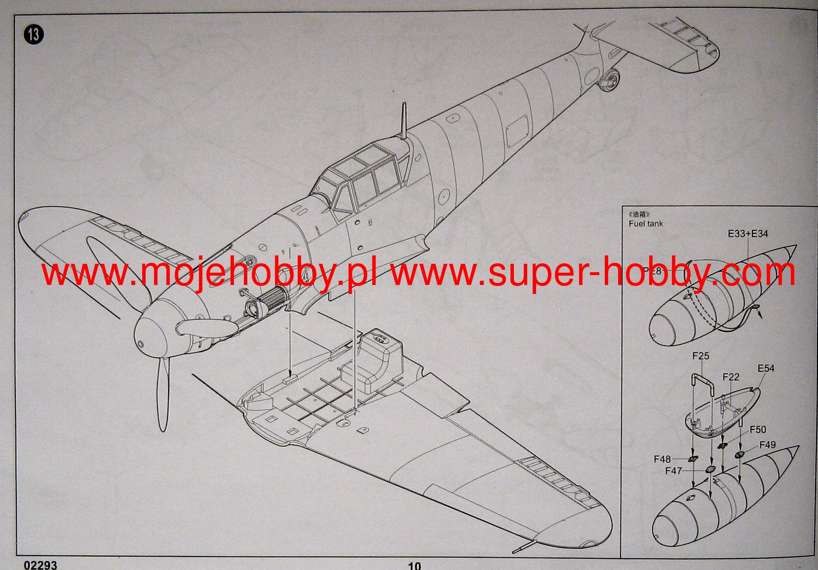 The Messerschmitt Bf-109 is a German metal-structure single-engine fighter in a low wing configuration with a classic tail. It turned out to be the basic and most produced Luftwaffe fighter during World War II. The flight of the prototype took place on May 29, 1935, and serial production continued in the years 1936-1945. In total, it is estimated that a total of about 35,000 Messerschmitt Bf-109 fighters of all varieties were produced, many of which ended up in the Czech and Israeli air forces after the war. The roots of the Bf-109 go back to the competition announced in 1933 by the Luftwaffe for a new fighter plane. In competition with the He-112, the Bf-109 project initially lost, but thanks to Willie Messerschmitt's intrigues, the project could continue and eventually he was the winner of the competition, becoming the Luftwaffe's primary fighter. Several main variants of the Bf-109 were developed in the course of production. The first pre-production series was the Bf-109B (Berta) with different versions of the Junkers Jumo 210 (A or Da) engine. They were tested in Spain from 1937 during the Civil War. The next version is the Bf-109C (Caesar). They had a different engine than the B version, and extensive armament consisting of two 20mm and 2 HP 7.92mm cannons. These machines also fought in the skies of Spain. The third version is the Bf-109D (Dora) with the Junkers Jumo 210 Da or Daimler-Benz DB 600 engine. It fought in the September campaign, but at the turn of 1939/1940 it was replaced by the E version. The most famous model was the Bf-109E (Emil) with a Daimler-Benz 601A or N engine. It was the first to use a three-blade, not a two-blade propeller. Bf-109E fought in the French campaign, over England, and in North Africa and on the Eastern Front. The ace who started his career on the Bf-109E was the famous Adolf Galland. The next version is the Bf-109F (Friedrich), which, according to the German pilots, was the most aerodynamically perfect. It sowed the changed shape of the fuselage, wings, cabin fairings, but no new engine was used. It was put into service at the turn of 1940/1941. As part of the development of the design, further Bf-109 specifications were developed, of which the G (Gustav) version was produced in the largest number of copies. The most important change increasing the machine's performance was the installation of a new 12-cylinder Daimler-Benz DB605A engine with 1475HP. The armament of the Bf-109G was a pair of 13mm machine guns located in the fuselage in front of the cockpit fairing, and the MG151 20mm or heavier MK108 30mm cannon. The last mass-produced version was the Bf-109K (Kurfirst), which production started in October 1944. A Daimler-Benz DB 605DB or DC unit was used as the engine. The Bf-109K was the fastest version produced during World War II, reaching up to 730 km / h. Apart from that, two versions were created - H and Z, but they were rather experimental versions and their mass production did not start. Subsequent improvements in propulsion and armament made the Messerschmitt Bf-109 one of the most dangerous fighters of World War II, and at the same time showed the great potential of the slightly angular airframe created by Willi Messerschmitt. Technical data (version Bf-109 G-6): length: 8.95 m, wingspan: 9.92 m, height: 2.6 m, maximum speed: 640 km / h, rate of climb: 17 m / s, maximum range: 850 km, maximum ceiling 12000m, armament: fixed - 2 MG131 13mm machine guns and 1 MG151 20mm cannon, suspended - 250 kg bombs, or 2 Wfr missile launchers. Gr. 21.