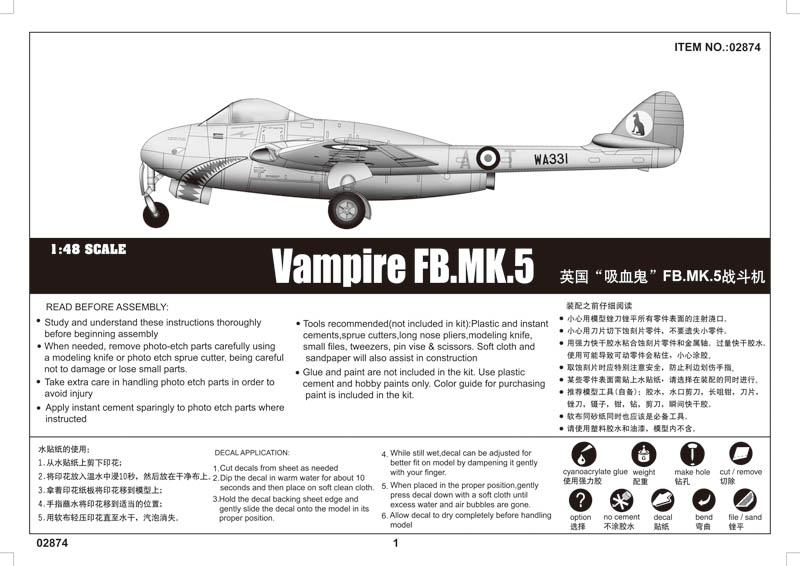 Купить БРИТАНСКИЙ ИСТРЕБИТЕЛЬ "ВАМПИР" FB.MK.5 BRITISH "VAMPIRE" FB.MK.5 FIGHTER (1/48)