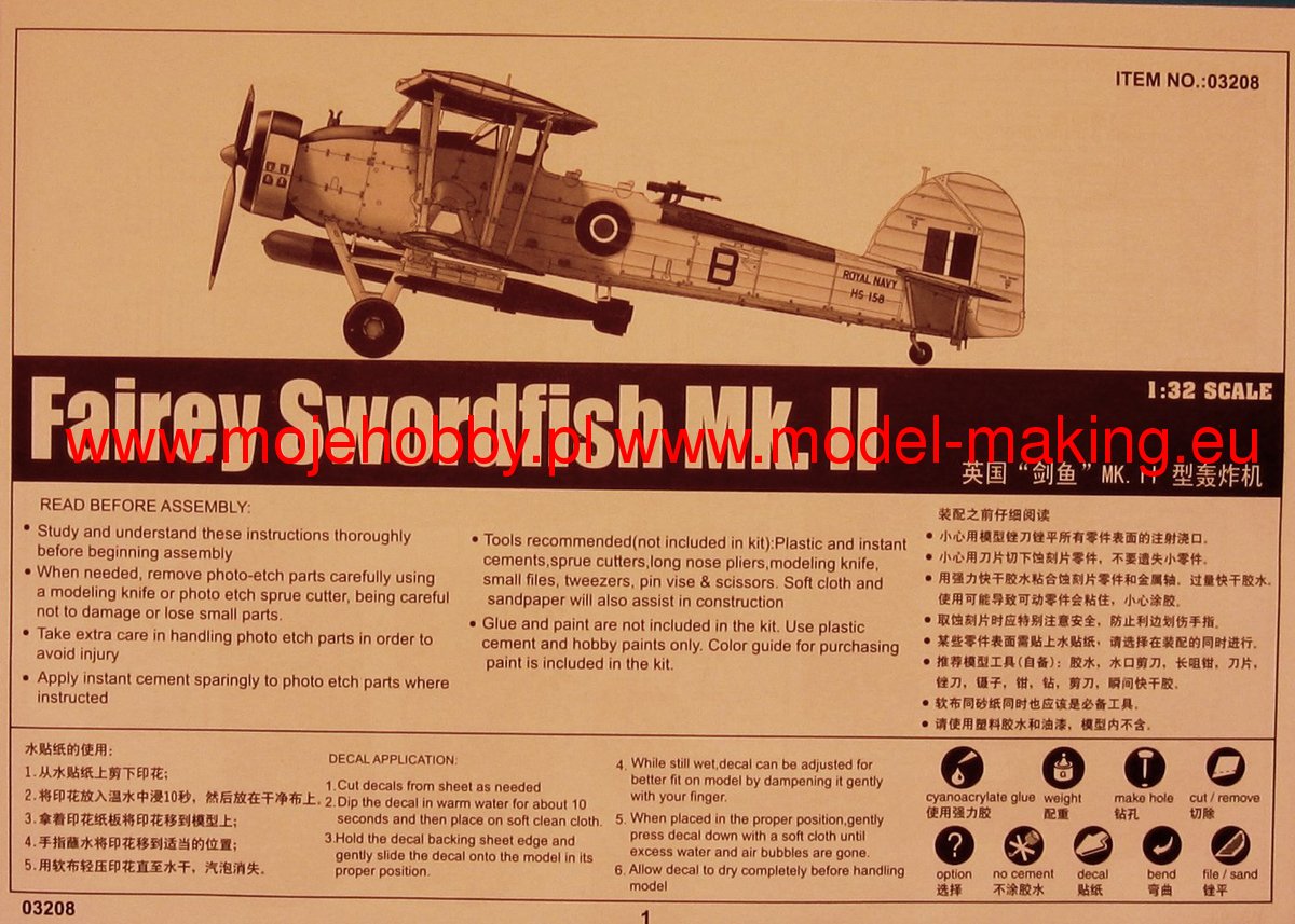 Купить FAIREY SWORDFISH MK.II (ФЕЙРИ «СУОРДФИШ» MK.II БРИТАНСКИЙ ТОРПЕДОНОСЕЦ-БОМБАРДИРОВЩИК) (1/32)