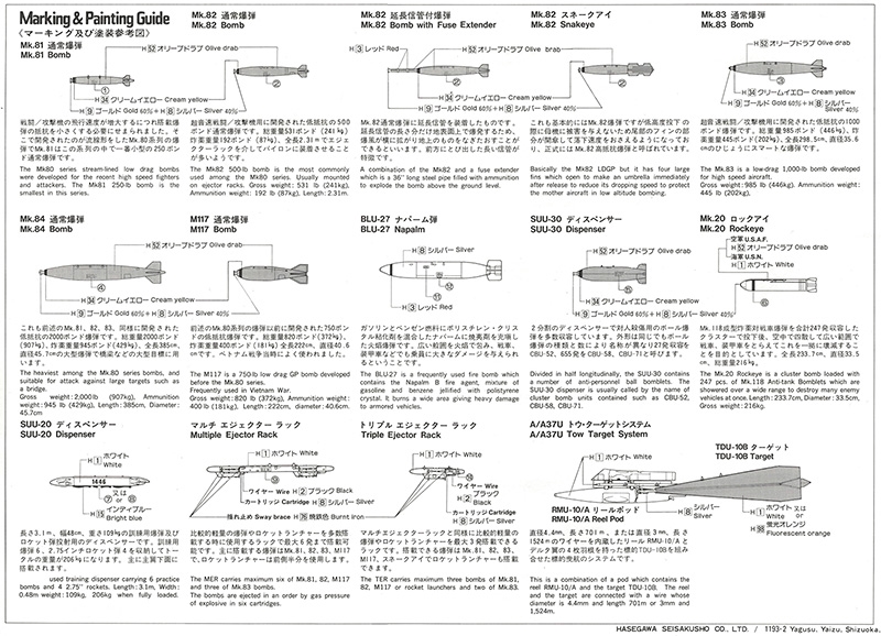 Описание Набор Hasegawa Aircraft Weapons: A (No. 36001) в масштабе 1:48 предназначен для детализации сборных моделей американских самолетов. Включает высокодетализированные пластиковые компоненты для воссоздания американских авиационных бомб и системы буксируемых мишеней (Tow Target System), используемых для тренировок и испытаний. Состав набора: - Американские бомбы (включая свободнопадающие и управляемые, например, Mk 81, Mk 82, Mk 84). - Элементы системы буксируемых мишеней (Tow Target System), включая мишени и буксировочные тросы. - Пилоны и крепления для установки на модели. - Подходит для самолетов, таких как F-4 Phantom, F-14 Tomcat, A-6 Intruder, A-7 Corsair, F/A-18. Особенности: - Точный масштаб 1:48, совместим с большинством моделей американских самолетов этого масштаба. - Высокая детализация с чёткой проработкой бомб и компонентов мишеней. - Простая сборка, подходит для моделистов всех уровней подготовки. - В комплекте инструкция с рекомендациями по сборке и покраске. Рекомендации: - Для сборки необходимы клей и краски (приобретаются отдельно). - Совместим с моделями Hasegawa, Tamiya, Revell и другими брендами в масштабе 1:48. - Рекомендуемый возраст: 14+.