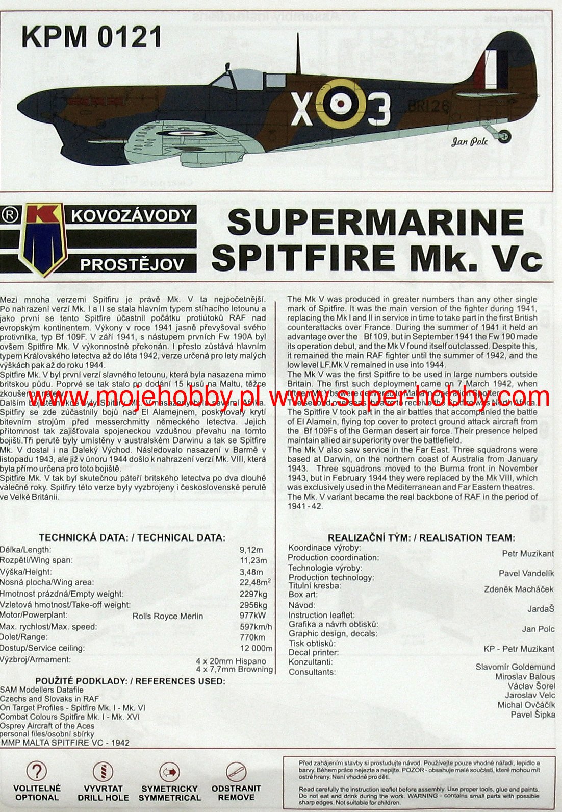 Supermarine Spitfire is probably the most famous British fighter from the Second World War. It was an all-metal machine with a low wing configuration, characteristic elliptical wings, a classic tail and a retractable landing gear. The prototype flight took place on March 5, 1936. The Spitfire proved to be the RAF's staple of the war, which continued to do well after the war, remaining in production for 10 years. The history of the Spitfire began on the drawing desk of RJ Mitchell, Supermarine's lead designer. The first machines went to RAF units in 1938, but when the Battle of Britain began in the summer of 1940, there were already 19 squadrons of modern fighters at the airfields - together with the slightly older Hurricanes of the Islands, 600 aircraft were defending. With the expansion of hostilities, the Spitfire served wherever the RAF operated in the Far East, North Africa and Italy, during the Normandy landings and fighting in France, and finally during the operation in Germany in 1945. For many Britons, he became a symbol of victory in World War II. This wonderful machine has at least a dozen production versions. The most important of them are, among others the first mass-produced Spitfire Mk.I powered by a 1030hp Rolls-Royce Merlin II engine. It was above all this machine that made such an excellent contribution to the Battle of Britain. Many versions of this model have been developed, including PR Mk IA (reconnaissance version) or PR.IG (armed reconnaissance version). Another interesting version was the Spitfire Mk.V with a Rolls-Royce Merlin 45 engine with 1440HP. Later, Merlin 50 engines were also assembled. Serial production of this version started in 1941 and was the RAF's response to the appearance of the Messerschmitt Bf-109F. Another very successful version is the Spitfire Mk.IX, powered by a Merlin 61 engine with a 4-blade propeller. It was created as an opponent to the Focke-Wulf Fw-190 and was put into production at the end of 1941. This version was modified many times and, for example, in 1944 it got a new gyro sight, an enlarged rudder or a different wing system. Another major version is the Spitfire Mk.XIV with a Rolls-Royce Griffon 61 engine and a five-bladed propeller. Serial production started in October 1943. One of the last series produced was the Mk.21 version. This version had a Griffon 61 engine, a strongly reinforced structure and sheathing, the wings were extended, increasing their flying surface. Mass production started in March 1945. Technical data (Mk.XIV version): length: 9.14m, wingspan: 11.23m, height: 3.05m, maximum speed: 717km / h, rate of climb: 18.5m / s, practical ceiling: 13,200m, range maximum: 1815 km, armament: fixed - 4 7.7mm machine guns and 2 20mm Hispano Mk II cannons, suspended - up to 225 kg of bombs.
