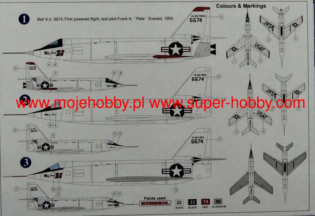 Bell X2 was an American experimental aircraft from the Cold War period, which made its first flight in 1952. The plane was 11.53 meters long with a wingspan of 9.83 meters. The propulsion was provided by a single Curtiss-Wright XLR25 rocket engine with a maximum thrust of 67 kN at sea level. The maximum speed was about 3.2 Ma. The maximum ceiling was, in turn, about 38,500 meters. The Bell X2 was developed and built in 2 units to carry out various types of high altitude testing at speeds of 2 to 3 Ma. Its aim was to collect experiences and observations related to the stability and controllability of an aircraft at such high speeds, as well as to study the phenomenon of the so-called thermal barrier. The plane was also able to fly on the border between the Earth's atmosphere and outer space. It was also on this machine that the speed of 3 Ma was exceeded for the first time. During the period 1952-1956, a total of 20 test flights were made on Bell X2 aircraft, both of which were lost as a result of disasters.