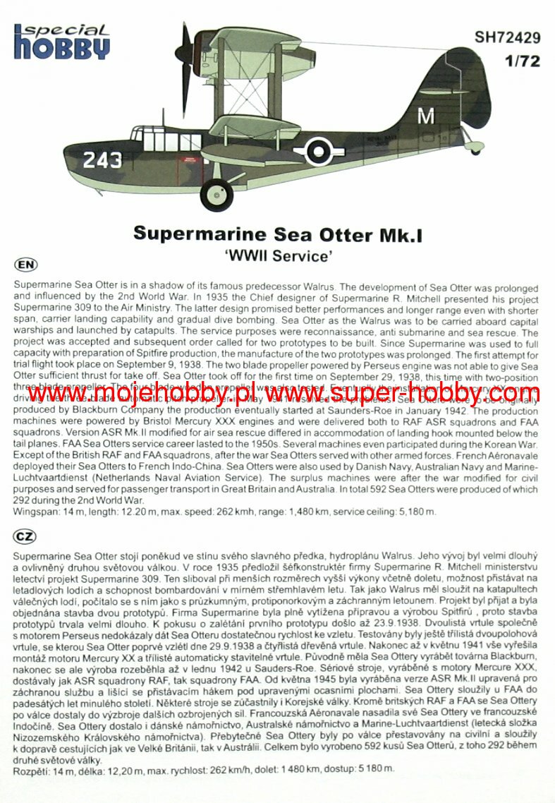 SPECIAL HOBBY САМОЛЕТ SUPERMARINE SEA OTTER MK.I 'WWII SERVICE' special hobby 1/72
