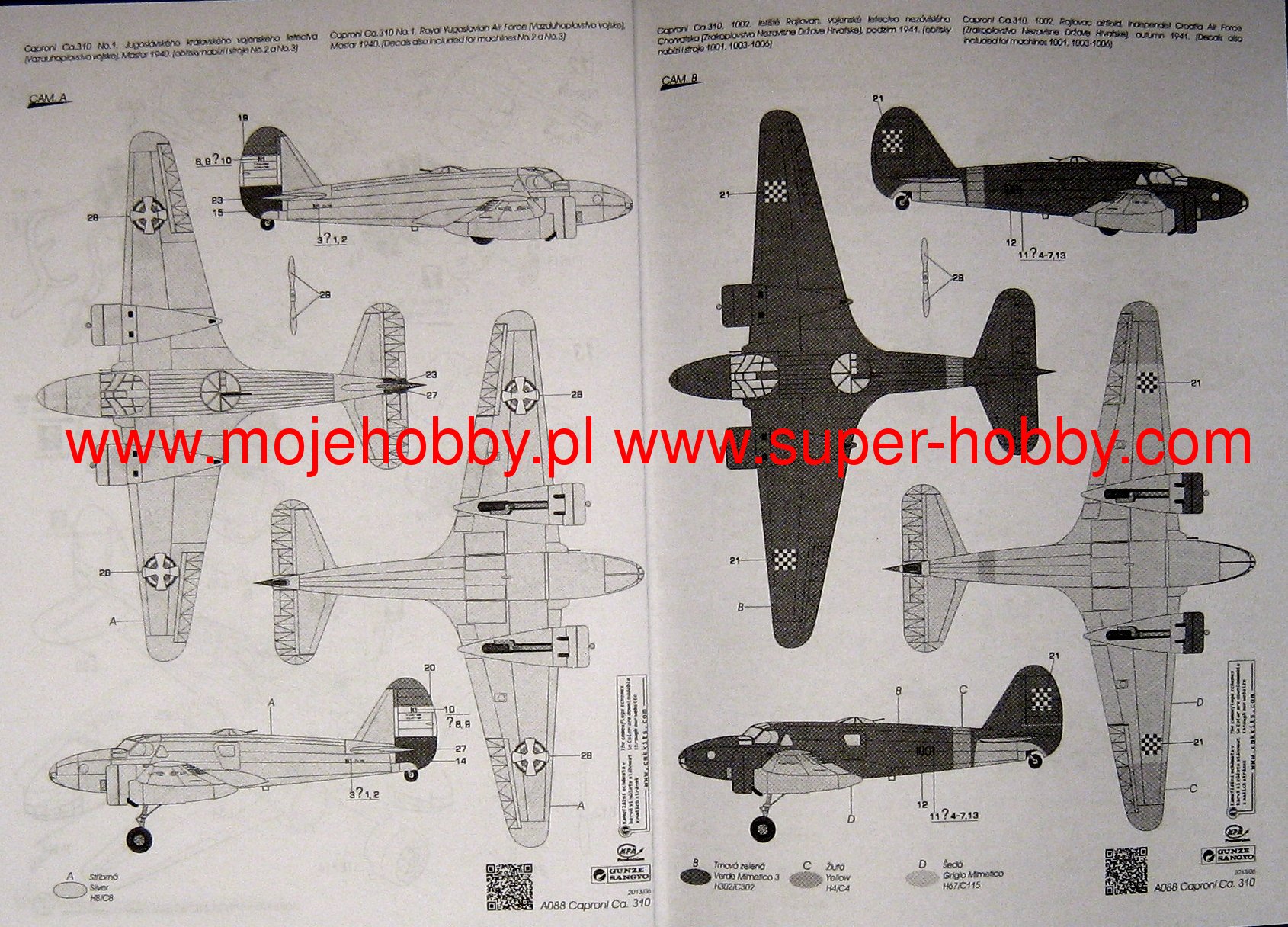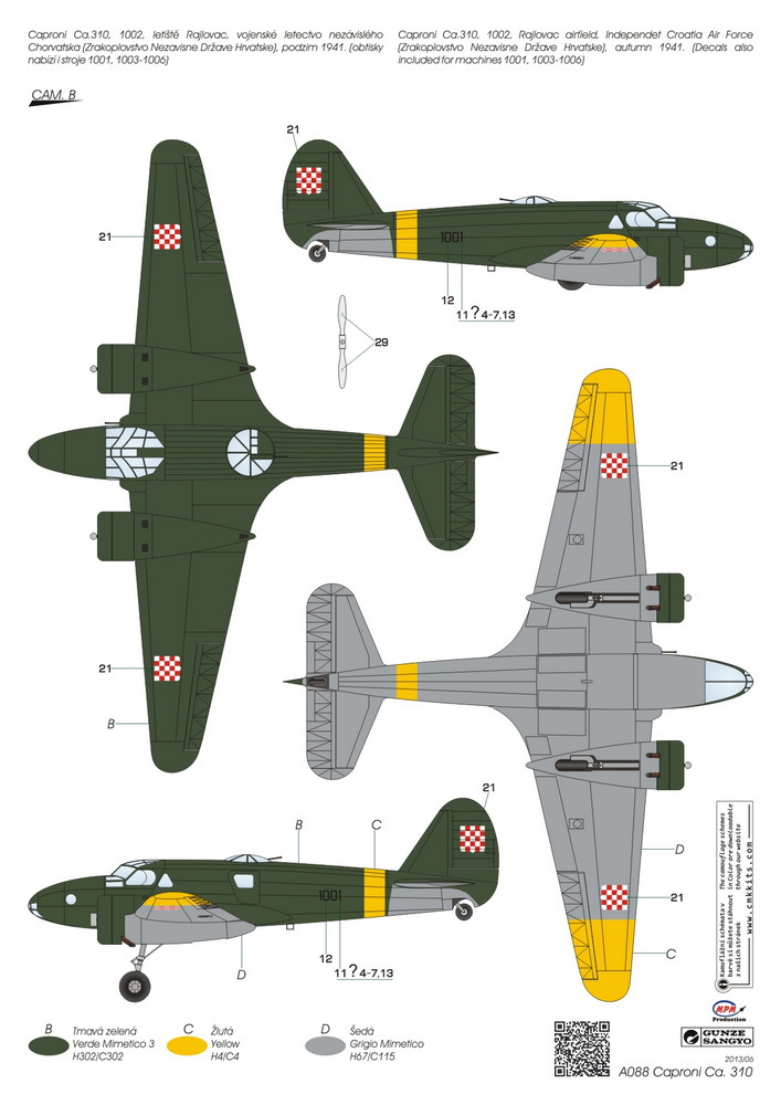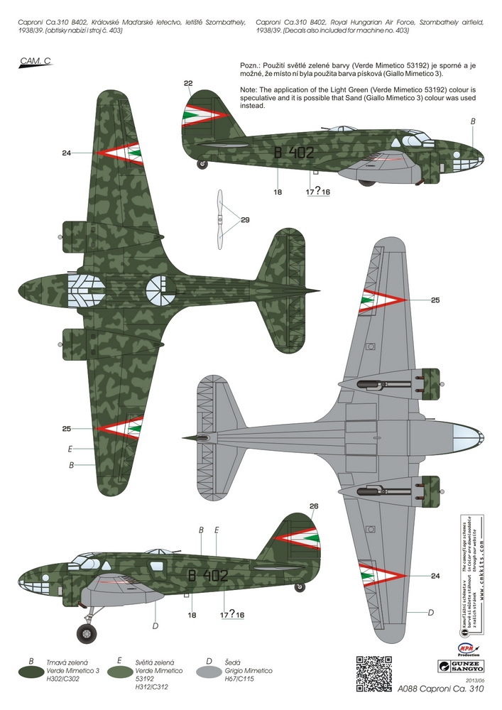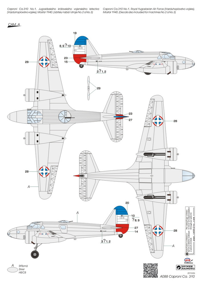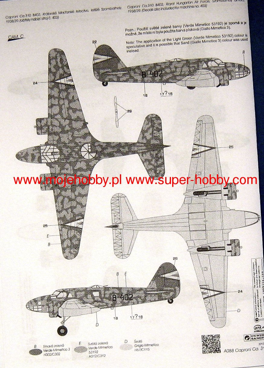 Caproni Ca.310 Libeccio był włoskim samolotem rozpoznawczym i lekkim bombowcem w układzie dolnopłata, o konstrukcji mieszanej, z podwoziem chowanym w locie. Napęd zapewniały dwa silniki Piaggio P.VIII C.35 o mocy 470 KM każdy. Oblot prototypu miał miejsce w 1937 roku. Produkcja seryjna rozpoczęła się w 1938 roku, kończąc się wytworzeniem ok. 310 samolotów tego typu. Uzbrojenie samolotu stanowiły 3 karabiny maszynowe Breda-SAFAT kal. 7,7 mm oraz ładunek do 400 kg bomb. Caproni Ca.310 powstał jako rozwinięcie innej maszyny tej samej firmy samolotu Caproni Ca.309. W stosunku do swego pierwowzoru Ca.310 różnił się przede wszystkim podwoziem chowanym w locie, jak również wykorzystaniem zupełnie nowych silników. Pierwotnie maszyna powstała na rynek cywilny, ale bardzo szybko zainteresowało się nią włoskie lotnictwo wojskowe (wł. Regia Aeronautica), które wprowadziło odpowiednio dotowane Ca.310 do linii w 1938 roku. Samolot tego typu nie okazał się jednak konstrukcją udaną: miał słabe osiągi, przeciętną manewrowość, a przede wszystkim był trapionym licznymi problemami mechanicznymi i wadami konstrukcyjnymi, obniżającymi jego zdolności bojowe. Swój chrzest bojowy Ca.310 przeszedł w ostatnim okresie wojny domowej w Hiszpanii (1936-1939), a później walczył w Afryce Północnej w latach 1940-1942. Maszyny tego typu zostały sprzedane Norwegii, Peru oraz na Węgry. Co oprócz modelu będę potrzebować do jego sklejenia?