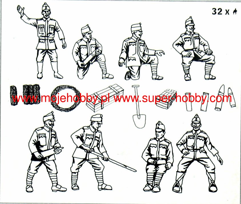 Артиллерия Дунайской монархии, т.е. Австро-Венгрии, к началу Первой мировой войны в августе 1914 г. насчитывала всего около 2900-3000 орудий, включая крепостную артиллерию. Большая его часть предназначалась для пехотных и кавалерийских частей, особенно дивизионного и корпусного уровня. Пехотная дивизия состояла из одного артиллерийского дивизиона в составе одного 77-мм артиллерийского полка, состоящего из 5 батарей, и одного 104-мм гаубичного эскадрона, состоящего из 2-х батарей. В свою очередь, в кавалерийской дивизии артиллерийские части были явно слабее и состояли из одного конно-артиллерийского подразделения. Стоит отметить, что тяжелая артиллерия в австро-венгерской армии подчинялась непосредственно высшему командованию и включала 305- и 240-мм минометы, 150-мм гаубицы и 120-мм пушки. К этому следует добавить еще крепостную артиллерию, которая насчитывала около 280 орудий. Стоит добавить, что артиллеристы австро-венгерской армии были - как и почти в каждой европейской армии того времени - солдатами основной службы, длившейся 2 года, а со временем - еще и резервистами. В целом, несмотря на предпринятые до 1914 года усилия, артиллерия ЦК Армии, хотя и трудно считать ее полностью устаревшей, отличалась от немецких образцов.