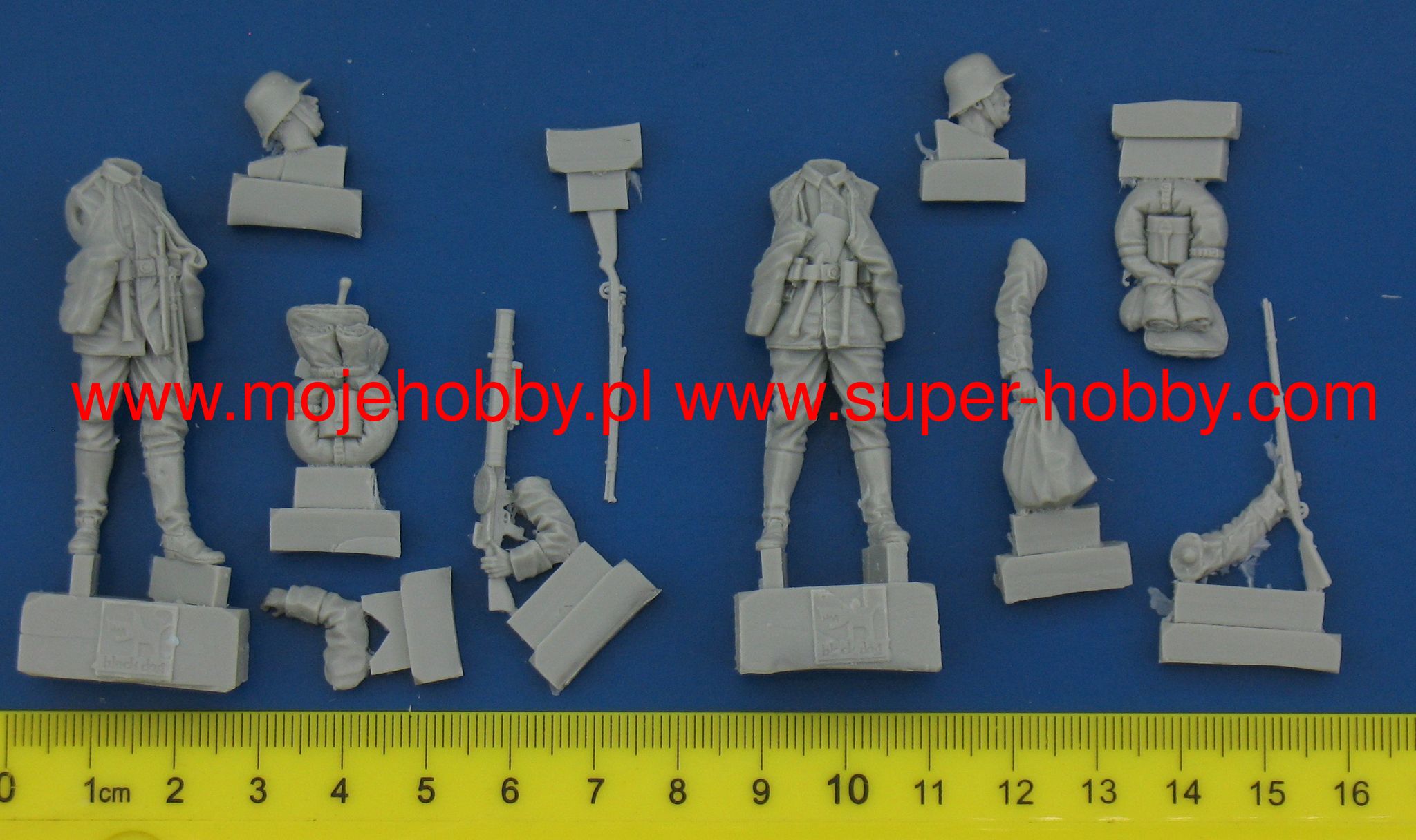At the start of World War I, in August 1914, the army of imperial Germany was considered the best and most efficient in the Old Continent. Such a conviction resulted mainly from the fame of the victories won in the course of the wars with Austria in 1866 and with France in the years 1870-1871. Also, many organizational solutions used at that time in the Prussian army, and later in the German army (e.g. strategic railway lines or mobilization techniques) were copied in other European countries. As in the French and Russian armies, the largest number of armed forces in the German army in 1914 was infantry. The German infantryman at that time was his main armament with the successful 7.92mm Mauser Gewehr 98 rifle, and on his head he wore the famous pickelhaub - so mercilessly used as a symbol of German militarism in the caricature of the Entente countries. It is worth adding that the German infantry uniform was much less colorful than its French counterpart. At the outbreak of the Great War, the German corps consisted of the headquarters, 2 infantry divisions, a heavy artillery squadron (16 150 mm caliber howitzers), a communications battalion, a searchlight company and an air company. The infantry division in turn consisted of two brigades, each of them two infantry regiments. On the other hand, a single infantry regiment consisted of 3 battalions and a machine gun company of 6 heavy machine guns. It is worth adding that the infantry division was supported by an artillery brigade of 72 guns. Of course, in the course of World War I, the German infantry underwent far-reaching changes. First of all, a steel helmet (German Stahlhelm) was introduced into the weaponry, which, with minor changes, survived in the German armed forces until the end of World War II! Hand grenades, gas masks and light machine guns (German: leichte Maschinengewehr - abbreviated as lMG) also began to be used on a large scale. Branches such as Stosstruppen also appeared.