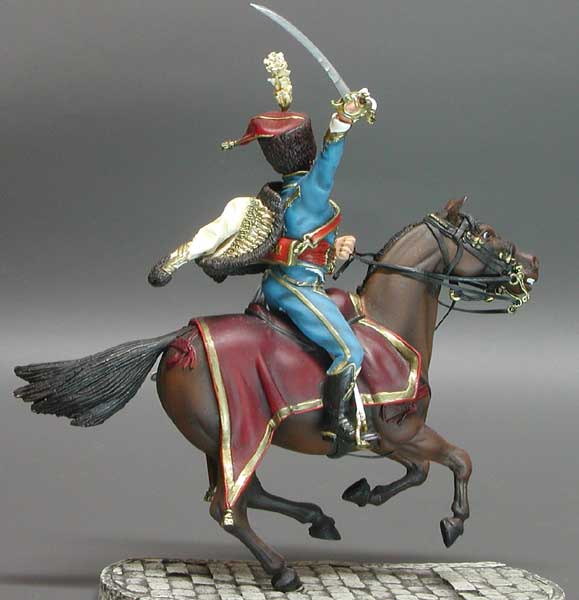 French 5th Hussars Regiment (fr. 5e regiment de hussards ) was formally formed in 1783, but was already in operation in 1780, i.e. still in the pre-revolutionary period. It was the last cavalry regiment formed in France before the outbreak of the Revolution. The unit took an active part in the last phase of the US War of Independence (1776-1783), taking part in the victorious Battle of Yorktown in 1781. At the end of 1783, the regiment returned to France, where in 1793 it was given its final name. The regiment took a very active part in the revolutionary wars of France (1792-1799) and during the Napoleonic wars (1799-1815). The regiment gained its first significant combat experience during the Battle of Jemmapes in 1792. The unit also fought at Austerlitz (1805) and - especially - at one (1806), where the regiment showed great mastery of the war craft. It also flashed during the Battle of Eckmühl (1809), and was put into combat shortly thereafter at the Battle of Wagram that same year. In 1812, the 5th Hussars Regiment took part in the Russian campaign, where it suffered huge losses. Despite this, he distinguished himself at the Battle of Hanau in 1813. The uniform of a private regiment in 1808 was made of a white dolman with a black trim and a light blue shack, a uniform jacket (richly braided!) And tight pants with a golden stripe.