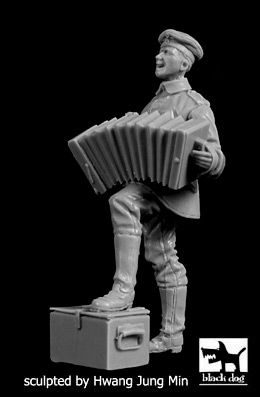 F35210 GERMAN SOLDIER WITH ACCORDION WWI black dog 1/35
