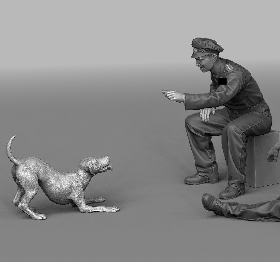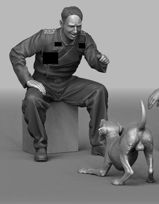 FI35-072 GERMAN TANK OFFICER PLAYING WITH PUPPY panzer art 1/35