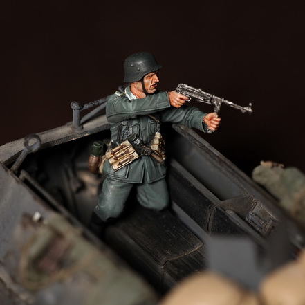 Panzergrenadier is a German term for a formation of panzer grenadiers, i.e. infantry units trained to fight in close cooperation with their own tanks. This term was officially used in 1942, when infantry divisions were renamed grenadier divisions and motorized infantry divisions into panzer grenadier divisions. It is worth adding that in the years 1937-1942, the Schützen Regiment was used to describe the infantry regiments serving in armored units. Theoretically, the basic equipment of armored grenadier divisions was to be armored half-tracked transporters, especially Sd.Kfz.251, but due to insufficient production, these infantry were often transported by trucks. As a standard, an armored grenadier division consisted of three infantry regiments, two battalions in each regiment and numerous support units, including anti-tank, anti-aircraft, sapper and communication units. Self-propelled guns, such as the StuG III, were often used in these formations. It is worth adding that the armored grenadier divisions were formed not only in the Wehrmacht, but also in the Waffen SS - for example the Totenkopf Division or the Hohenstaufen Division.