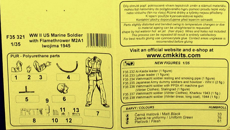 M2 Flamethrower is an American flamethrower from World War II and the post-war period. The first copies of this weapon entered service in 1943 and remained in it until 1978. In the basic version, the weight of the weapon in the "empty" configuration was 19.5 kg, and in the combat configuration - about 31 kg. The effective range of the shot from this weapon was up to 20 meters, but the maximum range was around 40 meters. The presented flamethrower was designed by US Army Chemical Warfare Service as the successor to the M1 and M1A1 flamethrowers used so far. Compared to its predecessors, it differed in the use of a new, more efficient, flammable liquid, as well as the use of a new ignition system capable of firing up to 6 shots of up to 9 seconds each. Most often it is assumed that M2 Flamethrower underwent its baptism of fire during the fighting in the Marianas in 1944. It was also later used in further fights in the Pacific, but also in the Korean War (1950-1953), but also in the Vietnam War (1964 / 1965-1975).The United States Marine Corps (USMC) is an independent branch of the US armed forces. The unit was established in November 1775, and the first branch of this unit was formed a year later. In the nineteenth and early twentieth centuries, US Marines served primarily in the region of South and Central America, guarding American interests in this part of the world. It was also then that the principle was established that it was the USMC that was deployed to the area of operations as the first among other units of the US armed forces. Corps soldiers fought in World War I, but they gained special fame in the course of bloody and heavy fights in the Pacific in 1941-1945, taking part in such battles as Guadalcanal (1942-1943), Tarawa (1943), Iwo-Jima and Okinawa (both from 1945). Often in the face of the enemy, the soldiers of this formation showed a lot of courage, an example of which can be, for example, John Basilone was awarded the Medal of Honor for his accomplishment during the battles on the Gudalcanal. After 1945, the soldiers of the Corps fought, for example, in the Korean War (1950-1953) or especially in the Vietnam War (1964 / 1965-1975), suffering heavy losses in the latter war. After the end of the Cold War, USMC soldiers took part in, for example, both Gulf Wars (1990-1991 and 2003). Currently, there are 182,000 soldiers in the Corps, and about 38,500 in the reserve. The motto of the Corps is the Latin motto Semper Fidelis (Polish always faithful).The Battle of Iwo-Jima is one of the bloodiest battles fought during World War II in the Far East. Its main goal was to seize this volcanic island by US Marines, relatively close to the Japanese mother islands. It was assumed that the control of Iwo-Jima, which would significantly facilitate not only the organization of strategic bomber raids in Japan, but also had a positive impact on the logistics of a possible Allied invasion of Japan. The Battle of Iwo-Jima began on February 19, 1945 and ended on March 26 of the same year. It is estimated that about 22,000 soldiers took part in the fighting on the Japanese side. On the other hand, about 110,000 soldiers fought on the American side, supported by about 1,200 aircraft. The battle began with a four-day artillery fire from American ships. Later, on February 19, US Marines stormed the beaches. From the very first hours of the fighting, the Japanese army put up a fierce resistance, using the terrain very well as well as the available cannons and machine guns. It is worth noting that the Japanese side used in this battle on a large scale also kamikaze units, which, among others, sank the escort carrier USS Bismarck Sea. The losses on both sides were very high: Japanese troops lost the entire garrison of about 22,000. people. However, only about 1,100 soldiers were taken prisoner! On the other hand, American troops lost as many as 26,000 killed and wounded. For the American side, the famous photo of Joe Rosenthal, taken on February 23, 1945, is a symbol of the fighting on Iwo-Jima, as well as the American success in this battle, on February 23, 1945, showing the placing of the American banner on Mount Suribachi by six Marines. It is worth adding that three of the six Marines in this photo died in the course of further fights on Iwo-Jima, and the author received the Pulitzer Prize for them. The photos also inspired the memorial to the Marine Corps, carved in 1954.