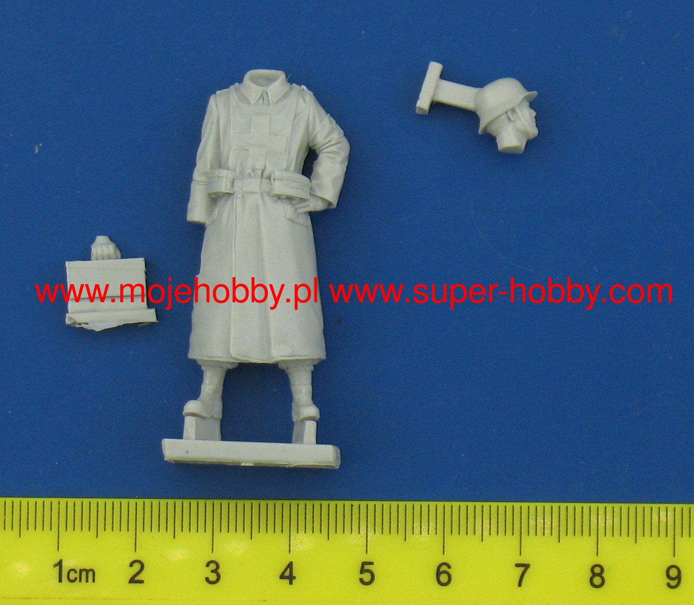 During World War II (1939-1945), the German army tried to attach the greatest possible role to providing medical care to its wounded soldiers, continuing in some way the traditions of the Great War. For example, in a German infantry division there were two medical companies (sometimes motorized), two ambulance platoons (motorized) and one field hospital. The motorized infantry division had the same medical services as that of the infantry division, but the number of ambulance platoons was increased to three. Interestingly, the armored division had 2 medical companies and 3 ambulance platoons - they were fully motorized and most often used armored vehicles. In the event of a more serious wound, a German soldier was evacuated to, for example, a battalion medical care point (German: Verwundetennetz), the so-called ambulance station (German Wagenhatleplatz), field medical care point (German Hauptverbandplatz) or division field hospital (German Feldlazaret). It is worth adding that while in Verwundetennetz, first of all, more advanced first aid was performed, in Hauptverbandplatz it was possible to perform more advanced surgeries or blood transfusions. In the case of seriously injured people, efforts were made to stabilize them before they were taken to Feldlazaret. It is also worth adding that every soldier of the German armed forces had a personal dressing.