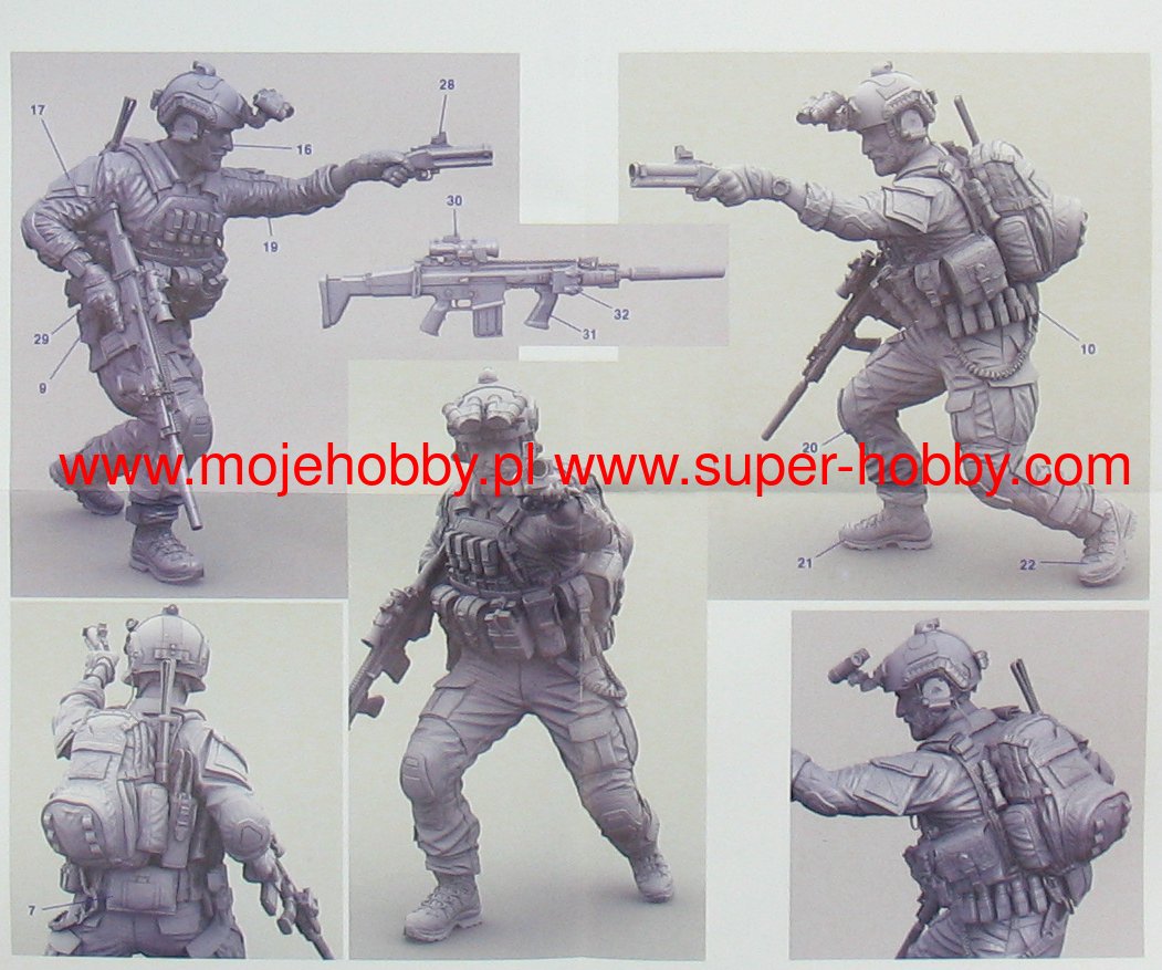 The FN SCAR H (Mk 17) rifle is a modern American-Belgian modular automatic rifle, 7.62 mm caliber. The first prototypes of the weapon were created in 2003, and the weapon entered service in 2009. The initial velocity of the projectile fired from this weapon was up to 714 m / s, and the effective shot range oscillates around 800 meters. The theoretical rate of fire is 550 to 600 rounds per minute. The weight of the weapon is 3.86 kilograms, and its total length is 0.89 meters. The FN SCAR H (Mk 17) rifle was developed by the Belgian company FN Herstal at the request of the US Special Forces Command as the basic rifle for American "specialists". Two main types of the FN SCAR rifle were developed. The first of them, designated as the FN SCAR L Rifle (Mk 16), has a caliber of 5.56 mm, uses NATO ammunition of this caliber and acts as an automatic rifle. The second version is the 7.62 mm FN SCAR H (Mk 17) rifle, which acts as a manual automatic rifle. Both weapons have replaced or supplemented the service rifles: M4A1, Mk 18 CQBR and Mk12 SPR, but also the M14 and Mk 11. Both versions of the FN SCAR rifle have sniper variants.US Navy SEAL (full name: United States Navy Sea, Air and Land) is the name of a special unit serving within the United States Navy. It was formed by a special order of President John F. Kennedy in May 1961, but it dates back to the World War II special unit of the US Navy called UDT (UDT). Underwater Demolition Team). Originally soldiers US Navy SEALs were trained primarily to operate in the aquatic and semi-terrestrial environment, with particular emphasis on the control of enemy ships and ships. Currently, it is a versatile special unit also used in land and surface-air operations. It is also used in anti-terrorist activities or to conduct the so-called special reconnaissance. Each soldier of the formation must undergo a very demanding 41-week training, after which he receives the so-called SEAL trident. Soldiers of this formation took part in many conflicts, including: the Vietnam War (1964 / 1965-1975), both the Persian Gulf Wars (1990-1991 and 2003) or the operations in Afghanistan (from 2001).