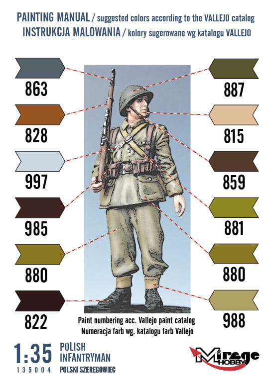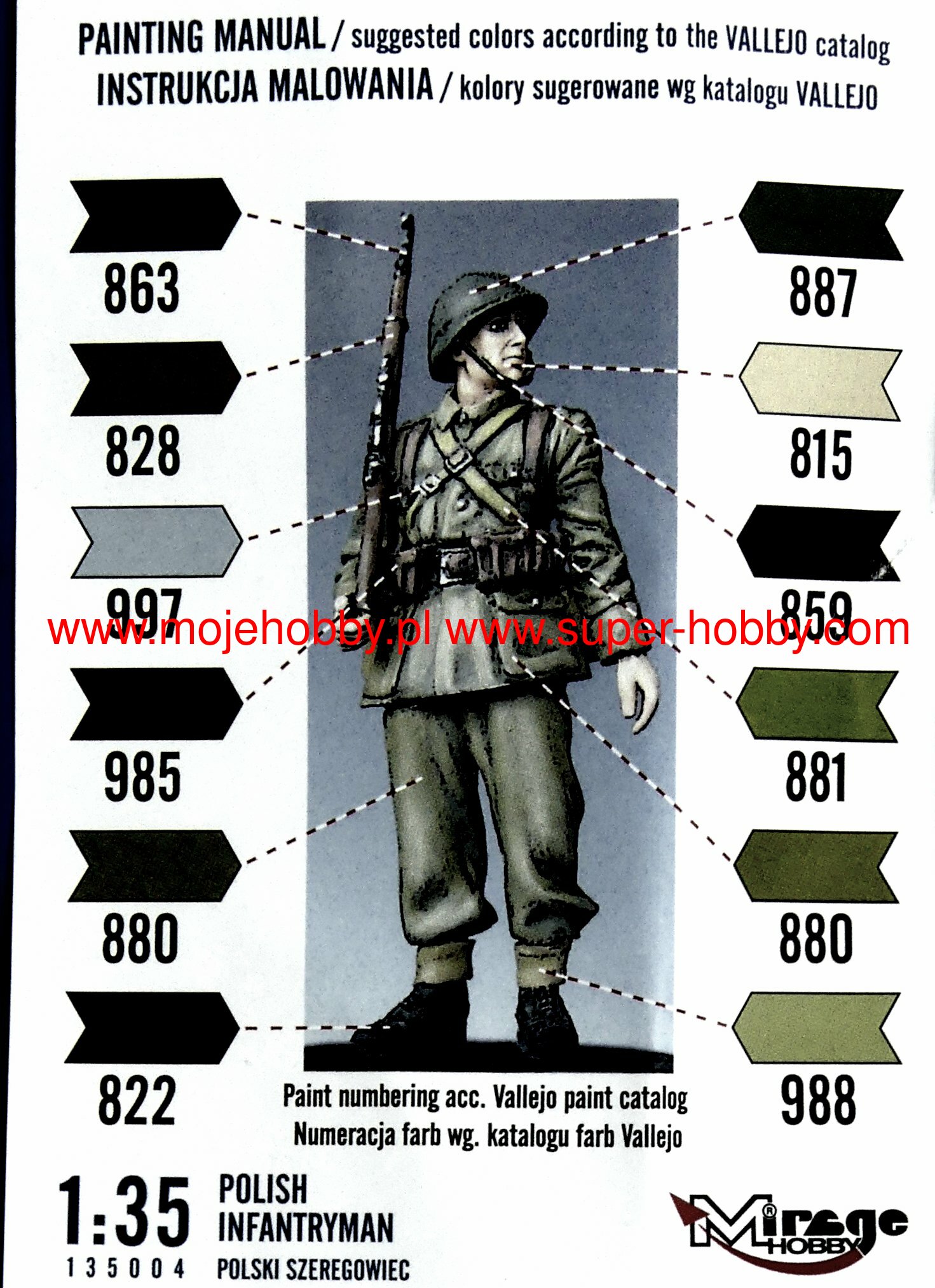 Download Mirage Hobby PDF catalogueInfantry was the most numerous and one of the most important formations in the Polish armed forces in the interwar period and during the September campaign. During the September campaign of 1939, the basic operational unit of the Polish infantry - as in almost every European army of that time - was a division, which, after mobilization, was to reach approx. 16,500 soldiers. Its basic strike force was three infantry regiments, supported by anti-aircraft and anti-tank artillery (27 37 mm cannons in full time) and light and heavy artillery (24 or 12 75 mm cannons in full time, 12 or 24 100 mm cannons, 3 105 mm cannons and 3 howitzers 155 mm). It is worth adding that the Polish infantry division showed many shortcomings compared to the German division. First of all, it had fewer machine guns and, above all, light and heavy artillery. Moreover, in the case of the Wehrmacht, the latter were significantly better equipped with motor vehicles, which improved their mobility and had much better means of communication and communication. For example: the German infantry division had 938 full-time cars, while the Polish - only 76 motor vehicles! This translated into the effectiveness of both formations on the battlefield, as well as their firepower and mobility.