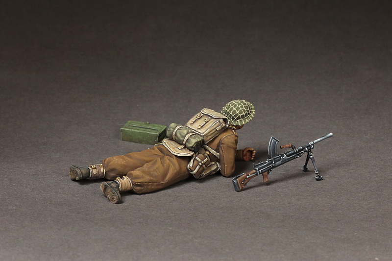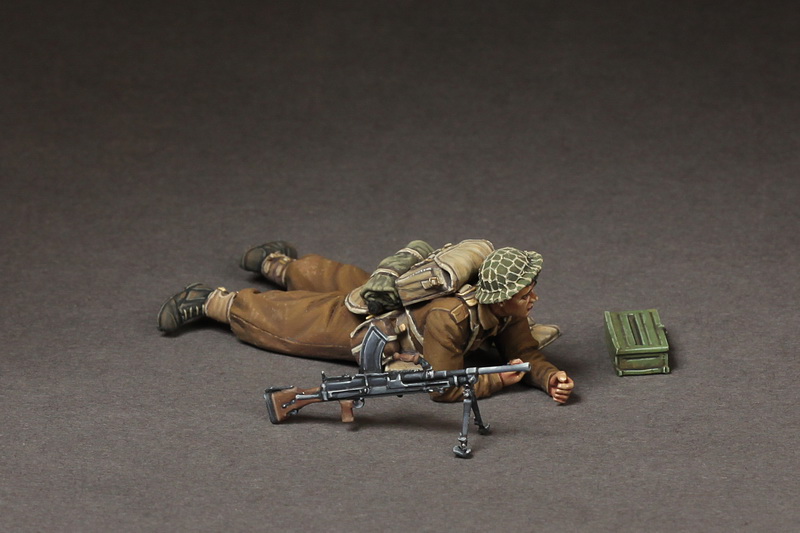 Во время Второй мировой войны британская армия сформировала в общей сложности 43 пехотные дивизии. В начале войны штат дивизии насчитывал около 13 800 солдат и офицеров, а в 1944 году эта цифра увеличилась примерно до 18 300 человек. Это значительное изменение численности служащих произошло в первую очередь за счет увеличения различных видов вспомогательных подразделений, а не за счет увеличения численности самих пехотинцев. В 1944 году британская пехотная дивизия состояла из трех пехотных бригад, каждая со своим штабом, штабного взвода, 3 пехотных батальонов и инженерных дивизий. Стоит добавить, что один пехотный батальон насчитывал около 780 офицеров и солдат и имел многочисленные подразделения поддержки (например, минометный взвод или разведывательный взвод). В состав дивизии также входила де-факто артиллерийская бригада с пятью артиллерийскими полками (в том числе один противотанковый и один зенитный), дивизион пулеметов и минометов, а также подразделения разведки, связи и саперы. Важным элементом повышения мобильности британской пехотной дивизии была ее полная моторизация. Основной винтовкой британского пехотинца была винтовка Lee Enfield №1 или №4. В качестве пулемётов использовались, в частности, пистолеты-пулеметы Sten, ручные пулемёты Bren и пулемёты Vickers. Наиболее широко применялись противотанковые орудия 40-мм и 57-мм 2- и 6-фунтовые пушки, а позднее и 76-мм 17-фунтовые пушки. В свою очередь основным вооружением полевой артиллерии была весьма удачная гаубица 25-фунтовая артиллерийская установка QF.