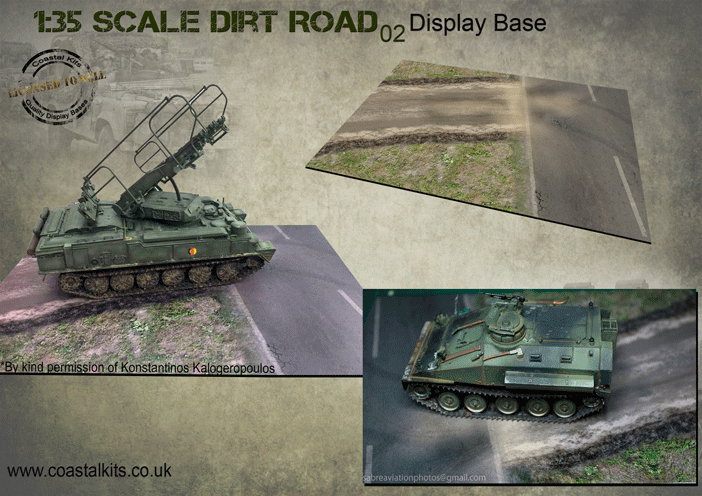 Whether an experienced modeller looking to display your favourite model kit, or are looking to enter the world of diorama building, Coastal Kits Scenic Display Range is an ideal way of bringing your model kits to life All our Display Bases are constructed from durable, hard wearing 3mm Foamex board, printed with the latest odourless latex ink onto laminated matt vinyl for near photographic quality, giving a permanent and waterproof finish which unlike paper products will not lift, fade or bubble. Add a few accessories and quickly bring your scene to life. Easily create stunning scenes with your models "LET LOOSE YOUR IMAGINATION"