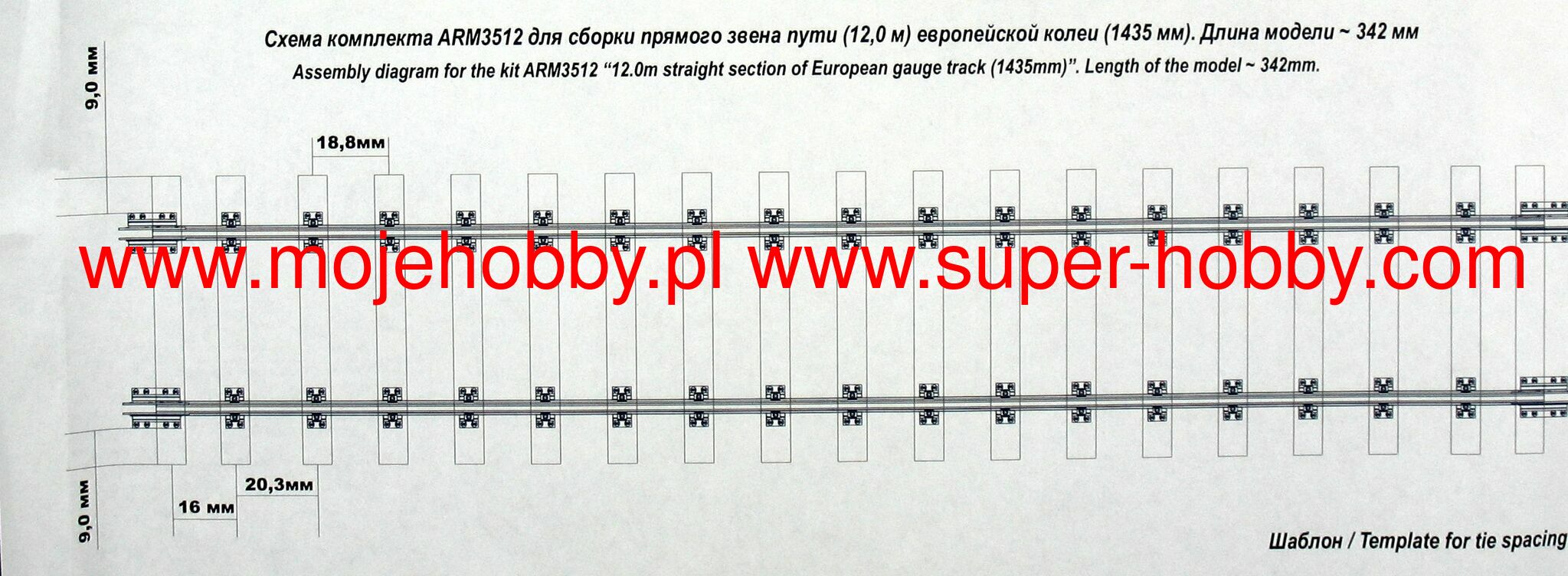 35016 12.0M STRAIGHT SECTION OF EUROPEAN GAUGE TRACK (1435MM), RAIL TYPE S49. LENGTH OF THE MODEL ~ 342MM. ASSEMBLY JIG (TRACK,RAILS) - NOT IN A SET armor35 1/35