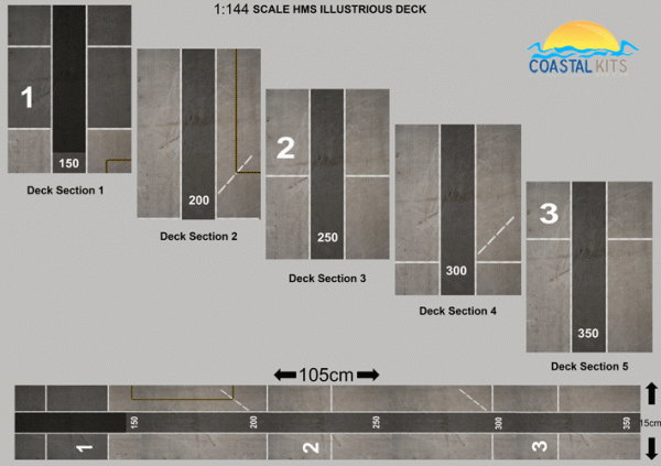 S260-144 1:144 SET OF 5 HMS ILLUSTRIOUS DECK SECTIONS 1050X 148MM coastal kits 1/144
