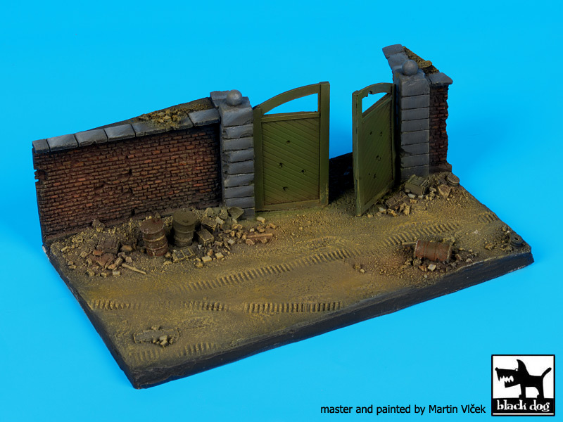 D72024 WALL WITH GATE BASE black dog 1/72