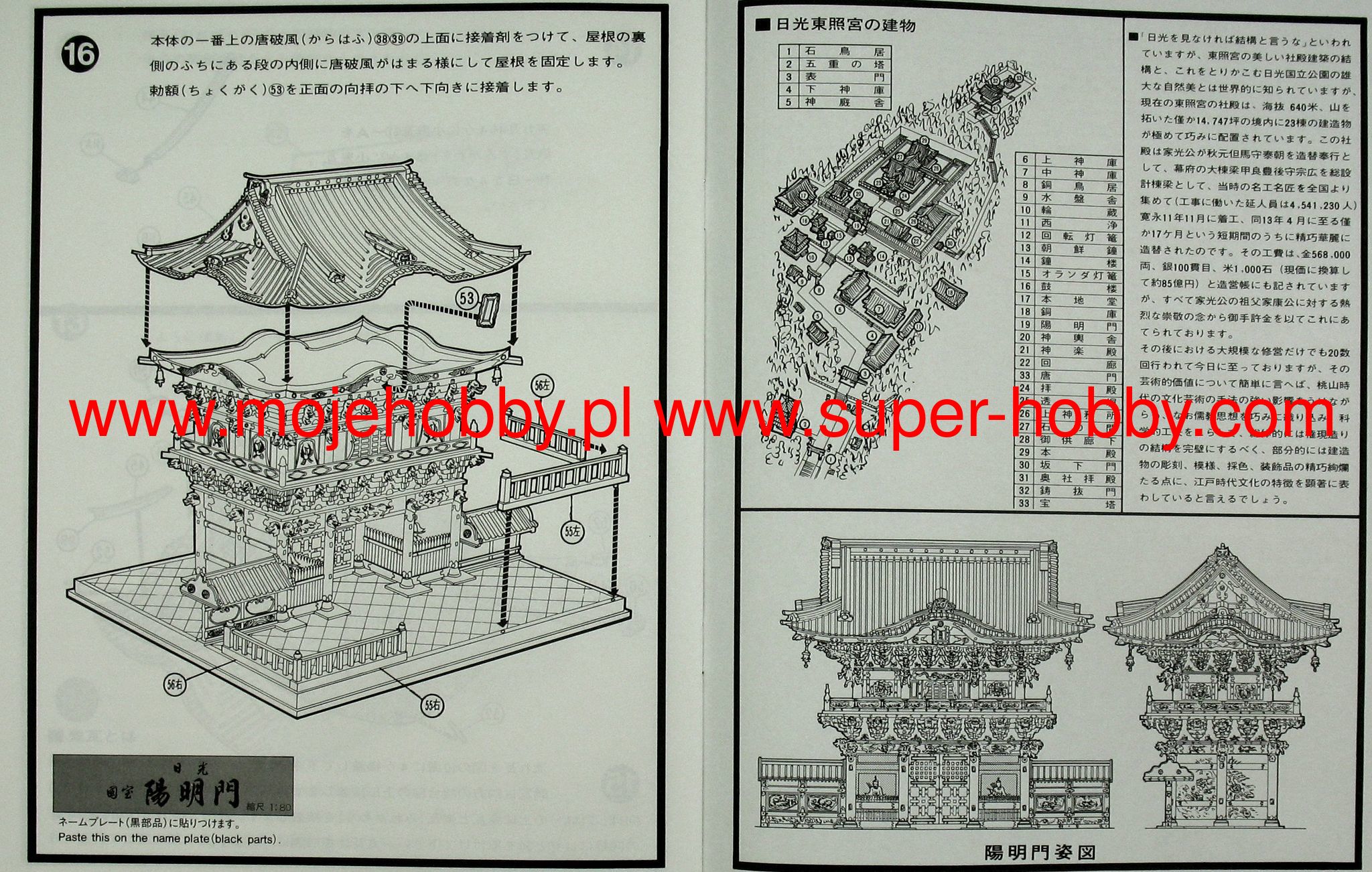 Yohmei-Mon is one of the sacred buildings erected in the temple complex of the Shinto religion called Nikko Tosho-gu in the city of Nikko, in the Tochigi Prefecture on the island of Honshu. The construction of the complex began in 1617 on the initiative of the son of the great Tokugawa shogun - Ieyasu Tokugawa, and was later continued by his grandson. Incidentally, Ieyasu Tokugawa is one of the most important figures in the history of Japan in the 16th and 17th centuries. Currently, the Nikko Tosho-gu complex covers an area of approximately 80,000 m2, and 55 buildings are situated on this large space. Among them, Yohmei-Mon is considered to be one of the most beautiful and most important, which can be translated into Polish as the Gate of Sunlight. It is richly decorated with gold, which makes the square in front of it very well lit on clear days. Another name for the gateway is Higurashi-no-mon.