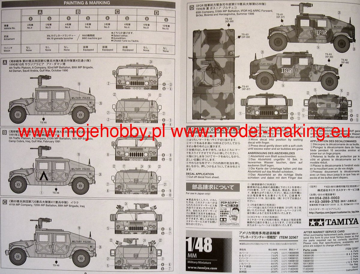 U.S. MODERN 4X4 UTILITY VEHICLE HUMMER W/GRENADE LAUNCHER (СОВРЕМЕННЫЙ АМЕРИКАНСКИЙ ПОЛНОПРИВОДНЫЙ 4X4 СЛУЖЕБНЫЙ ГРУЗОВИК НА БАЗЕ «ХАММЕР» С ГРАНАТОМЁТОМ) tamiya 1/48