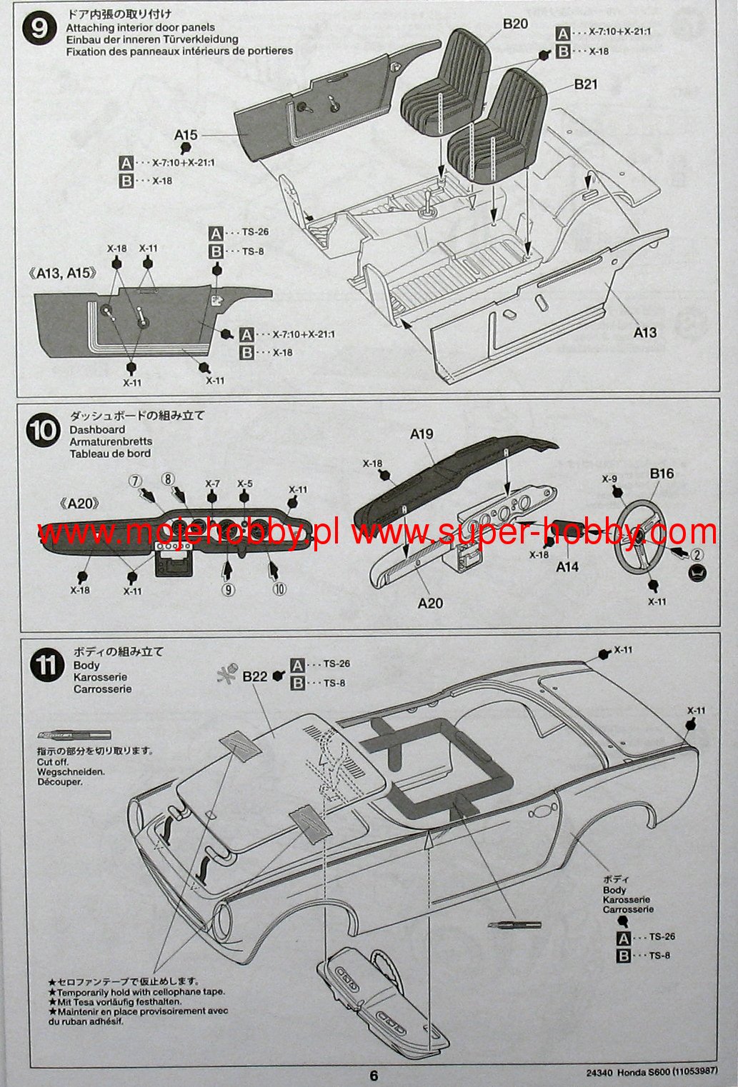 ОПИСАНИЕ ТОВАРА Набор пластиковых элементов для сборки модели автомобиля Honda S600. Модель имеет высокую степень детализации с множеством конструктивных подробностей.Покрышки из резиноподобного пластика. Детали с металлическим напылением для колпаков колёсных дисков, элементов фар и габаритных огней, бамперов, решётки радиатора, дворников, внешних ручек дверей, крышки бензобака и проработки других подробностей. Самоклеящиеся металлизированные детали для эмблем. В комплекте декаль для панели приборов и номерных знаков. Сборка элементов осуществляется при помощи специального клея. Внимание! Клей и краски в комплект не входят.
