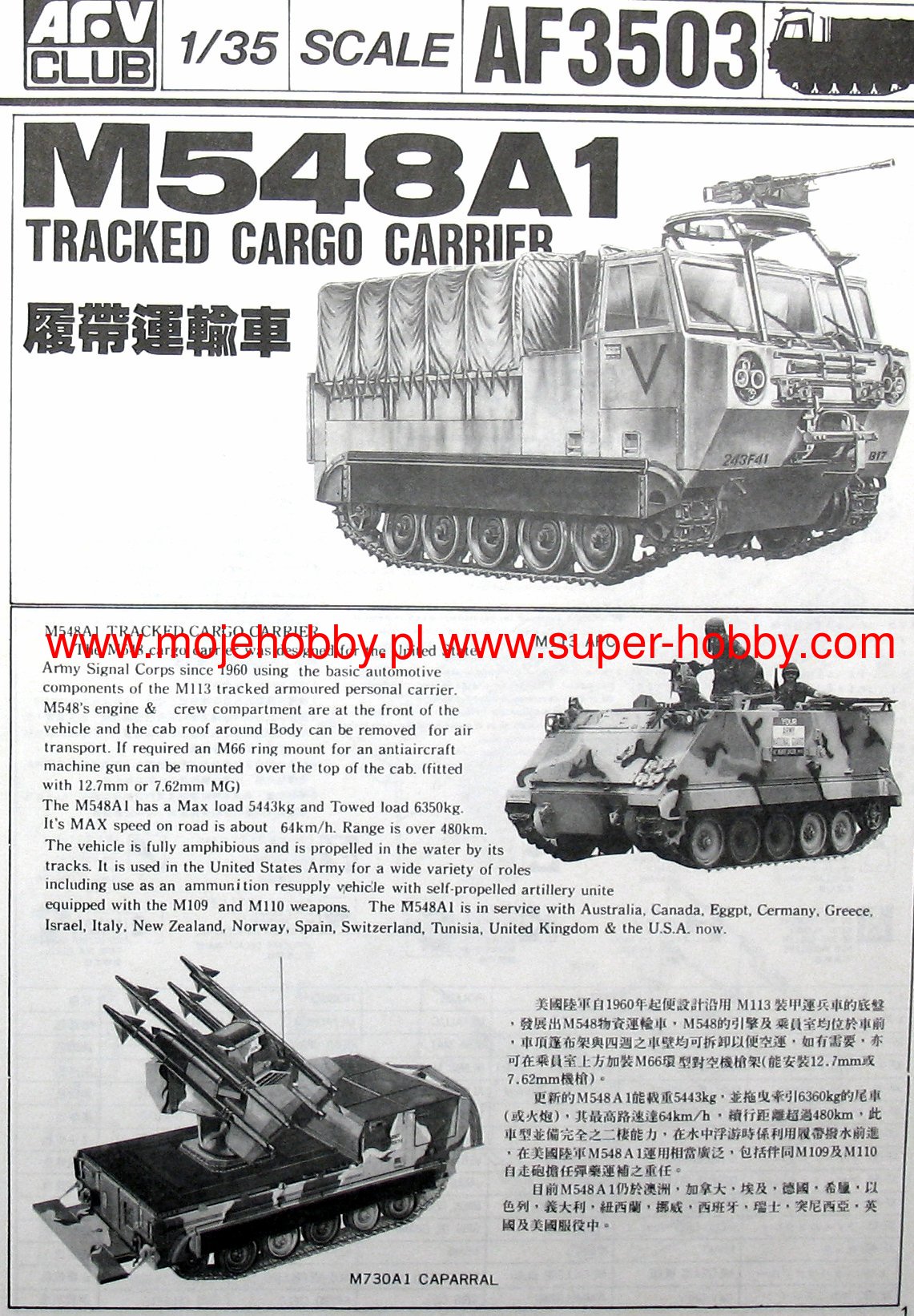 The M548 is a modern American tracked transport vehicle. The first prototypes of the vehicle were created in the mid-1960s. The drive is provided by a single motor Detroit Diesel 6V53 with a power of 204 HP. The armament of the car is usually a single machine gun cal. 7.62 or 12.7 mm. The M548 vehicle was built on the basis of the chassis and many components of the M113, the basic US Army armored personnel carrier in the 1960s and 1970s. The M548 served as a supply wagon, ammunition wagon, and general-purpose transport vehicle that performed quite well off-road, a trait that surpassed many wheeled vehicles in the U.S. Army. In the course of serial production, several variants of this car were created, apart from the basic version. Chronologically, the first was the M548A1, which had a modified cooling system and better suspension. A version of the M548A2 was also created, which served in the Marine Corps and had the ability to overcome water obstacles without special preparation. Later, the M548A3 version was put into production, with a more powerful engine and improved off-road mobility. Vehicles of this type have already been withdrawn from the US Army, but are still in service with the armed forces of Switzerland and Iraq.