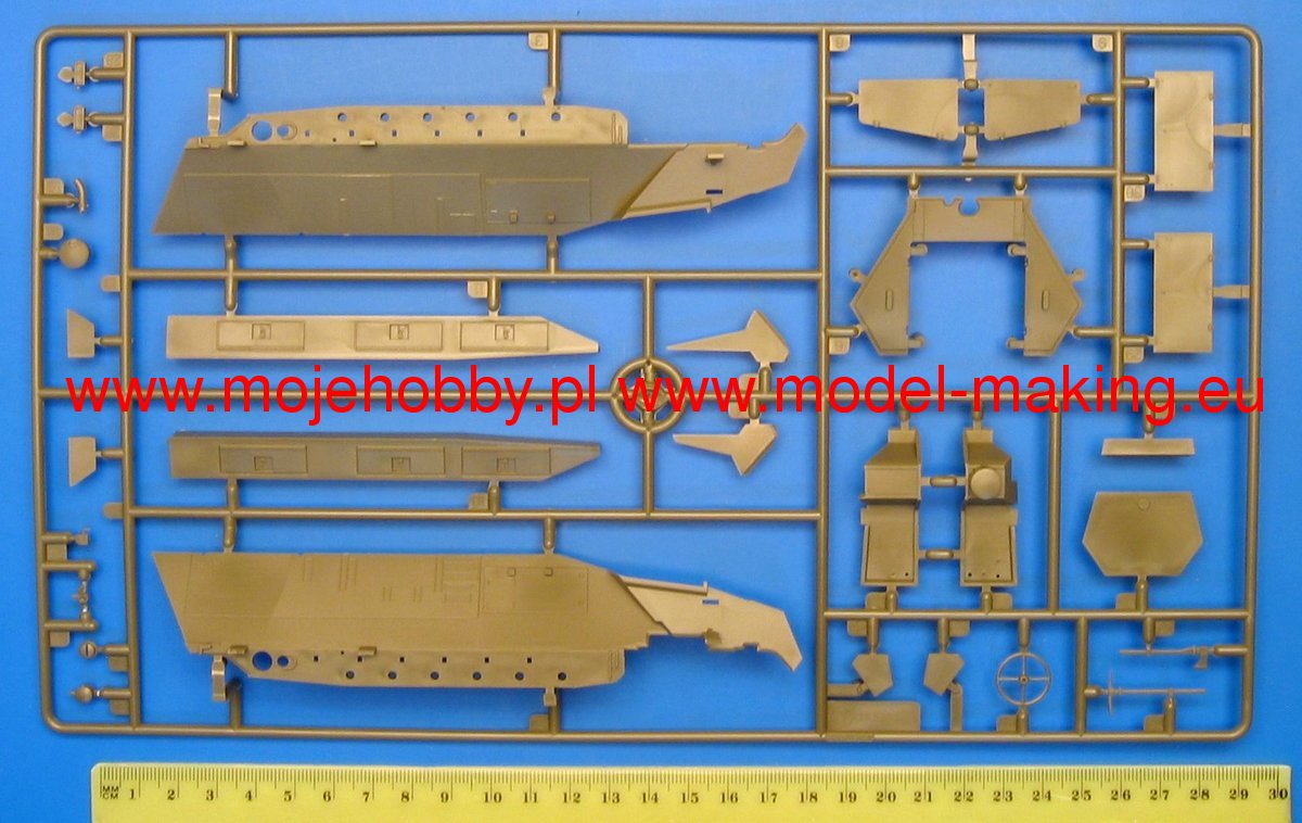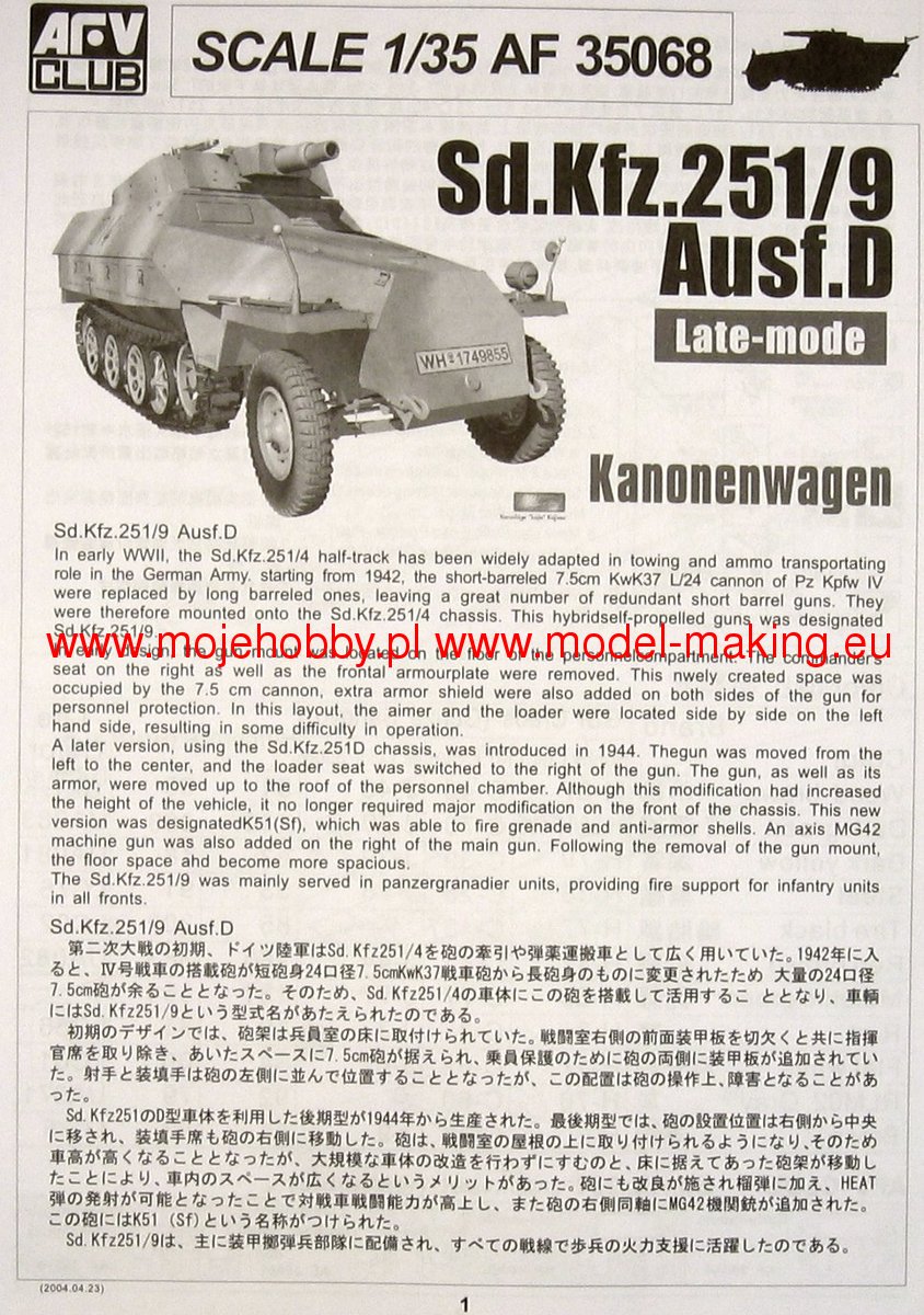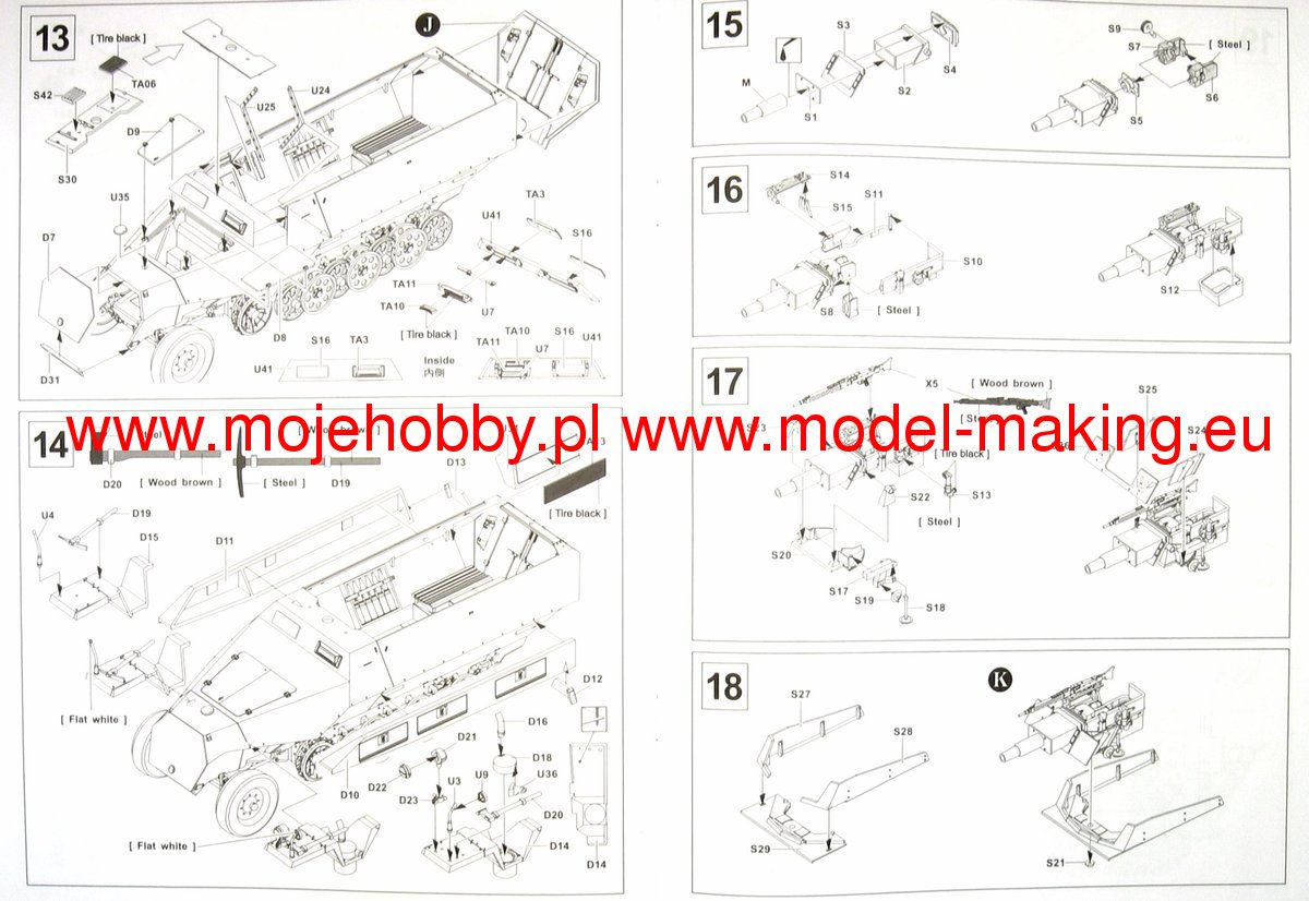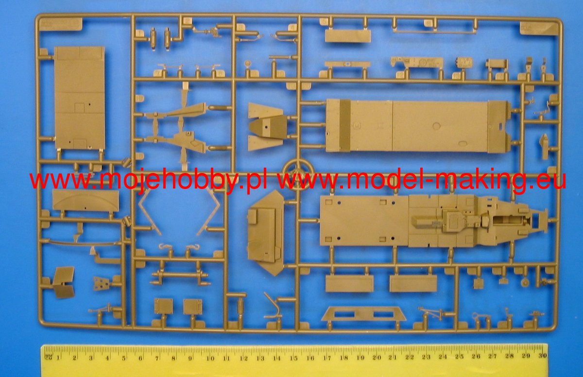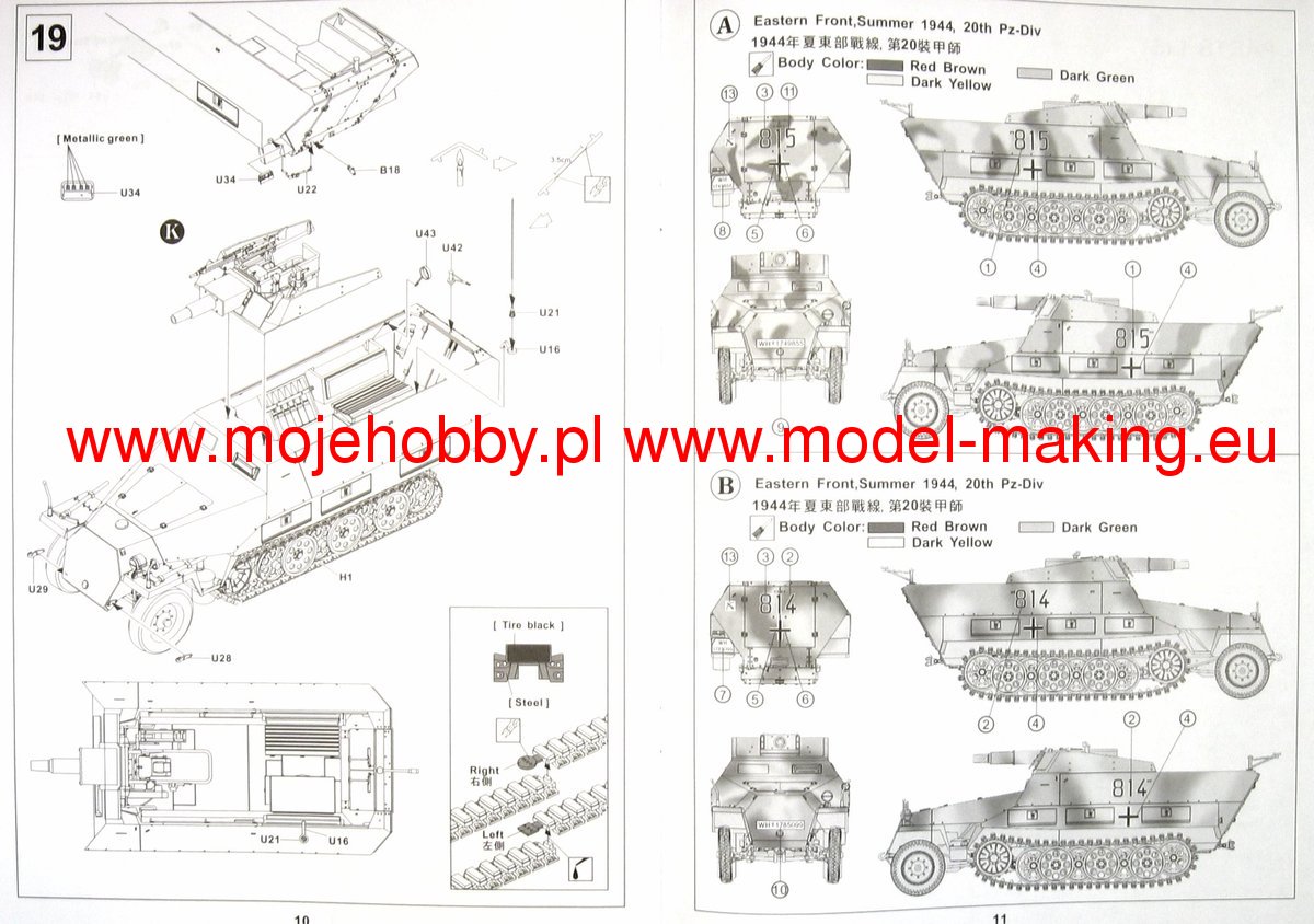 Sd.Kfz 251 was a German, medium, half-track armored transport from the Second World War. The first prototypes of the vehicle were made in 1935, and serial production continued in 1939-1945, ending with the production of about 14,500 units. The Sd.Kfz 251 was powered by a six-cylinder engine Maybach HL 42 TURKM with 100 hp . Sd.Kfz 251 was developed as a new, basic half-tracked transporter of the German armed forces. Its design was based on the Sd.Kfz.11 heavy tractor, with several elements changed in the adapted chassis: a new fuel tank was added, the location of the steering wheel, and the exhaust system was redesigned. In the course of serial production, four basic versions of the Sd.Kfz 251 (Ausf. A, B, C and D) were created, however, in terms of details related to the production process (especially the C version) and a slightly different arrangement of elements inside the fuselage. During World War II, more than 20 variants and versions of the Sd.Kfz 251 were created. The chronological first was the Sd.Kfz 251/1, which was the basic version, armed with two MG34 or MG42 machine guns and capable of carrying up to 10 landing troops. In 1941, a version of the Sd.Kfz 251/2 was developed, armed with an 80 mm mortar. There was also a version of the Sd.Kfz 251/3, which was a communication and radio communication vehicle with various sets of radio stations and antennas. In 1942, the Sd.Kfz 251/9 Stummel variant was developed, armed with a 75mm StuK 37 short-barrel gun. More interesting versions were the Sd.Kfz 251/16 with two flamethrowers or the Sd.Kfz 251/20 UHU equipped with an infrared radiation emitter and intended for targeting at night. Cars Sd.Kfz 251 of all versions served primarily in armored divisions and armored grenadiers on virtually all fronts of World War II: from the September campaign (1939), through the campaign in France (1940), fighting in the Balkans and North Africa (1941-1943) after fights on the Eastern (1941-1945) and Western (1944-1945) fronts.