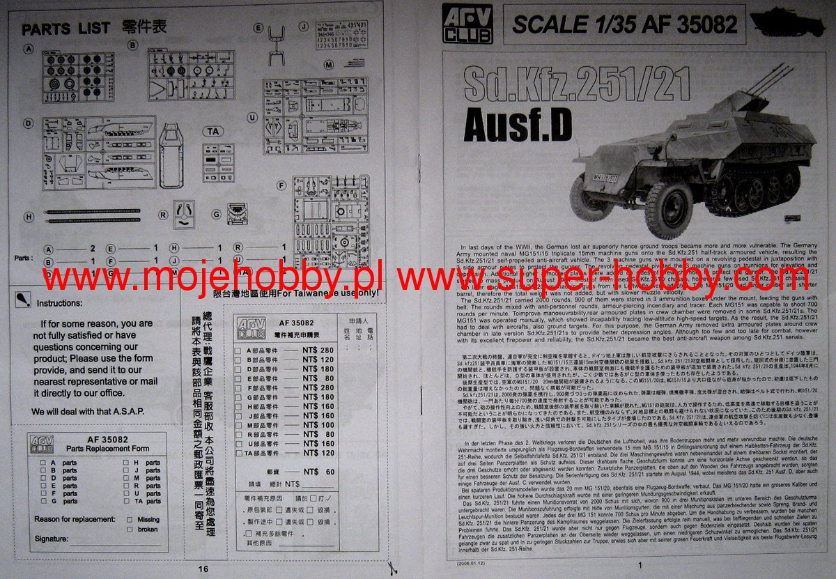 SD.KFZ.251/21 AUSF.D DRILLING afv-club 1/35