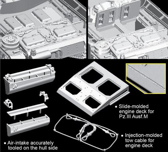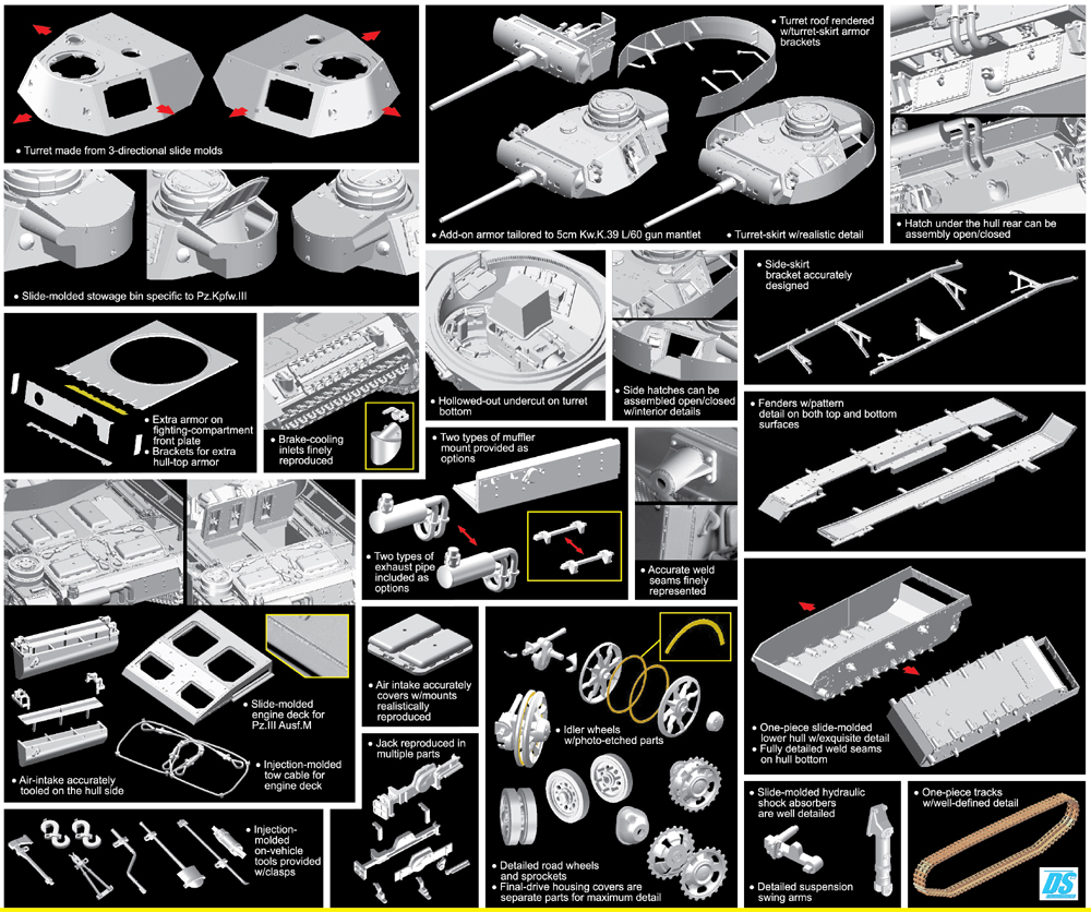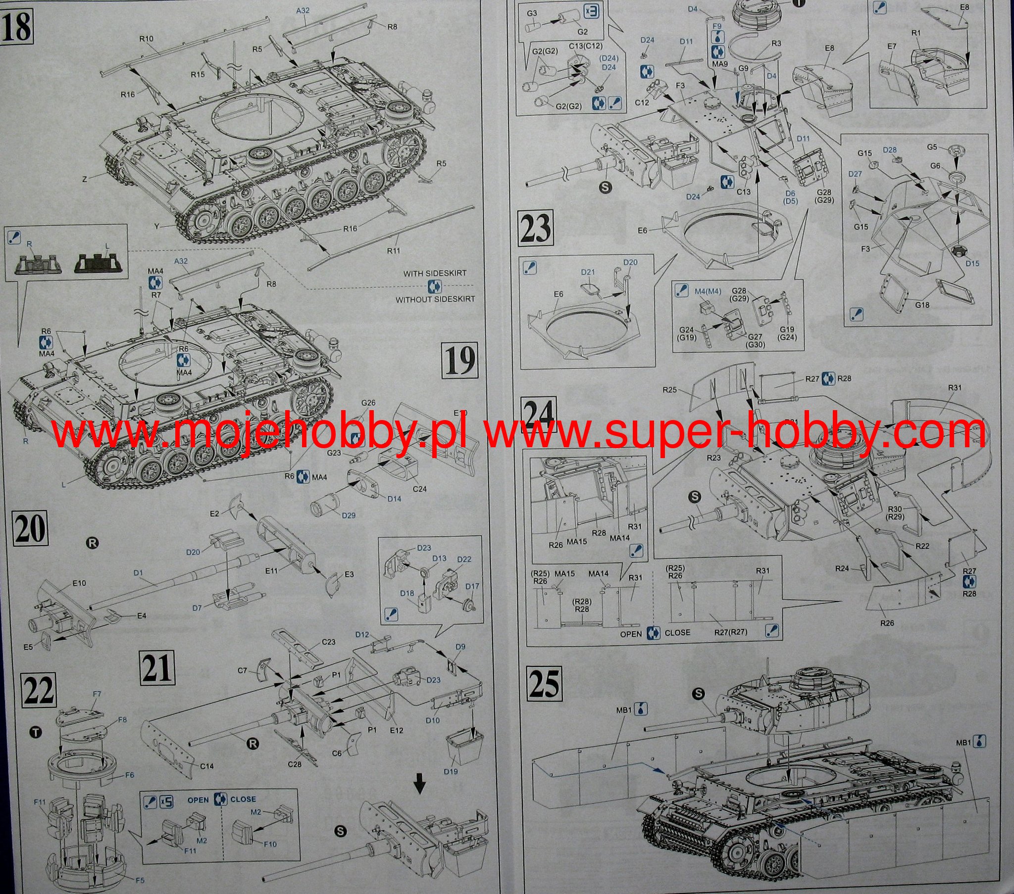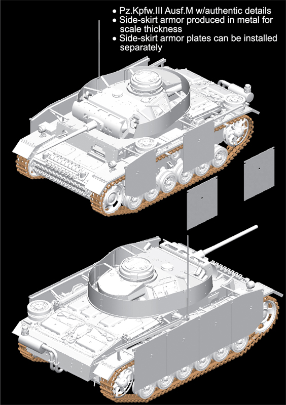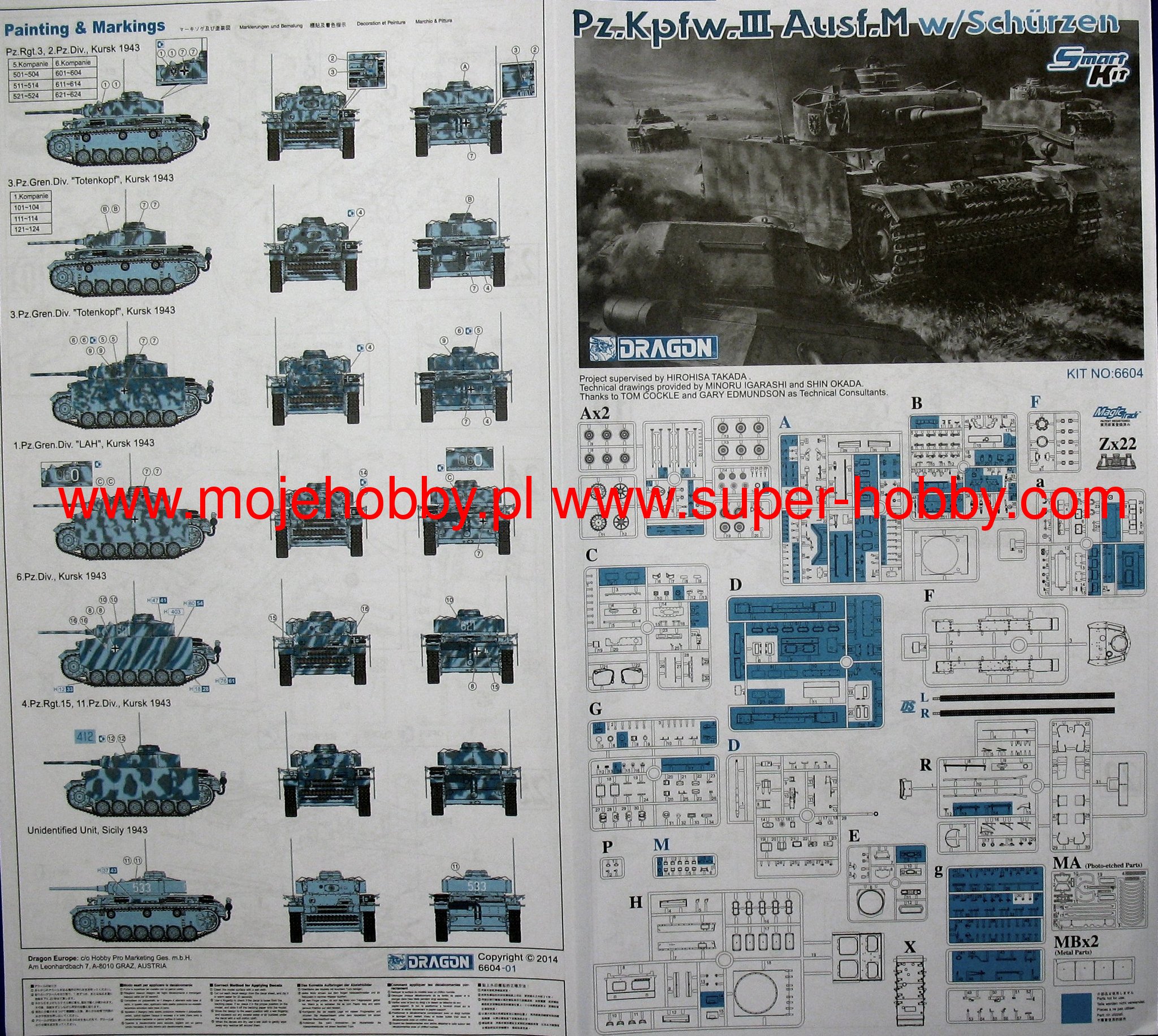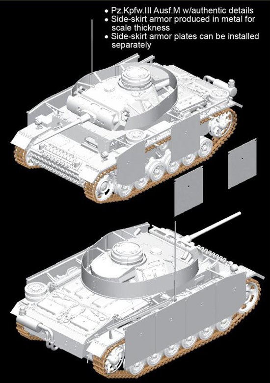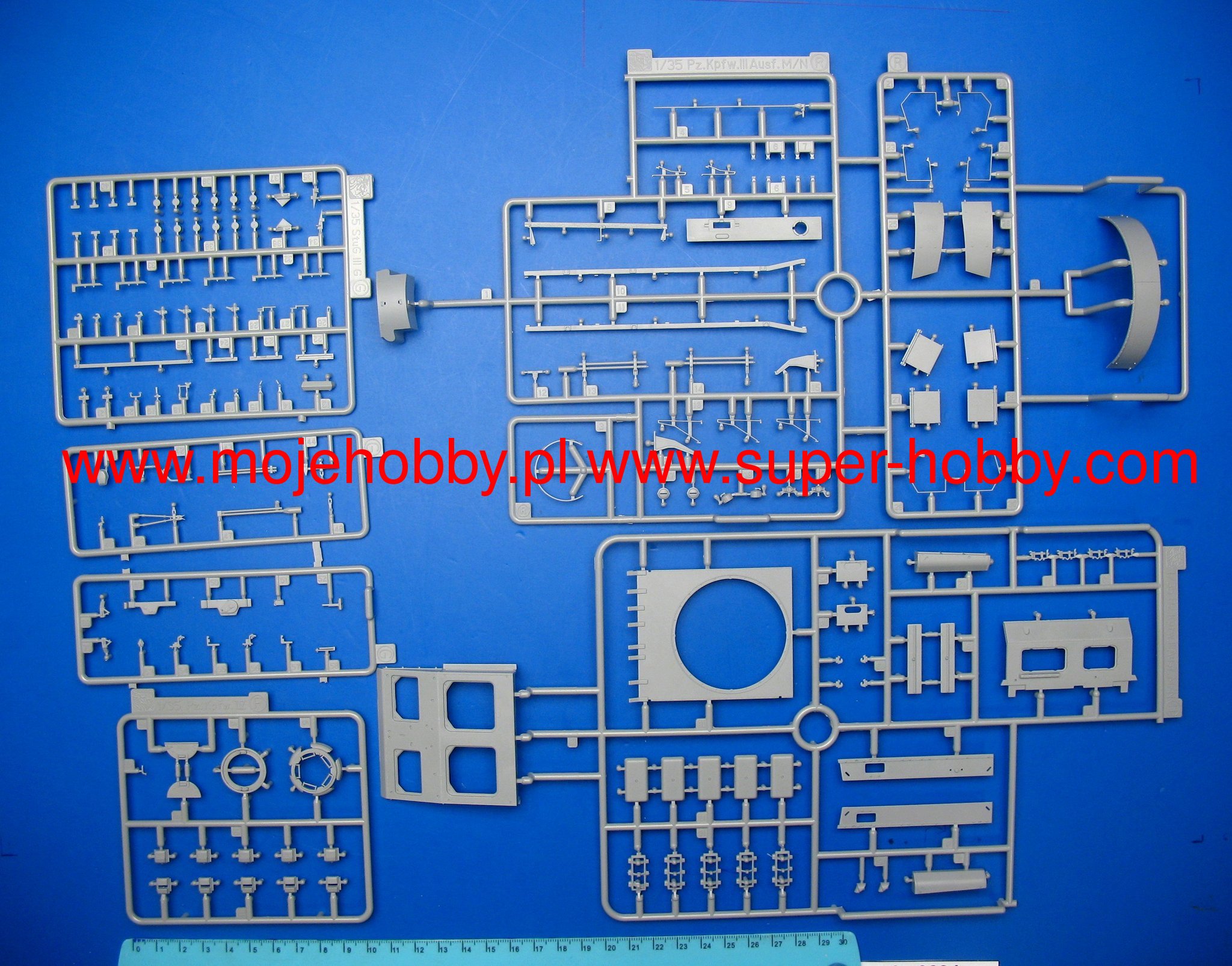 The PzKpfw III (Panzerkampfwagen III) was a German medium tank from the Second World War. The first prototypes of the vehicle were made in 1936, and serial production continued in the period 1937-1943, ending with the production of about 5,800 vehicles. The tank in the E version was powered by a single Maybach HL 120 TRM engine with a capacity of 300 HP. It was armed with one 37mm KwK 35/36 cannon and two 7.92mm MG 34 machine guns. placed in the tower. PzKpfw III was the "workhorse" of the German armored forces during World War II and one of the most intensively developed and modernized Wehrmacht tanks. Its serial production started in 1936, and many variants of this tank were created in its course. Chronologically, the first version was the A version, armed with a 37mm gun and a 230hp engine. However, already in December 1938, the E version was created, which was the first version produced in large series. It had a new, significantly more powerful engine, a completely new suspension and stronger armor in the front part of the turret and hull. Later (from December 1940) it was also armed with a more powerful 50mm cannon. In March 1940, the G version began to be produced, in which the rear hull and turret armor was reinforced. Soon after, in October 1940, the production of the H version started, which from the very beginning was armed with the 50mm KwK 38 L / 42 gun and had reinforced frontal armor. One of the most produced was the J version, which had armor up to 50 mm thick (later reinforced with aplique plates), and after the experience gained from the clashes with the T-34 and KW-1 vehicles - it was intensively rearmed for the KwK 39 L / 60 cannon. cal. 50 mm. The last development version was the N version, which was to be a support tank for armored grenadiers and was armed with a 75mm KwK 37 L / 24 short-barreled cannon. Numerous other vehicles were built on the chassis of the PzKpfw III, such as the StuG III assault gun. PzKpfw III tanks were used on almost all fronts of World War II - from the September campaign in 1939, through the campaign in France in 1940, operations Barbarossa and Typhoon in 1941, the Battle of Kursk in 1943, to the last operations of the German army against The USSR and the Western Allies in 1944-1945.