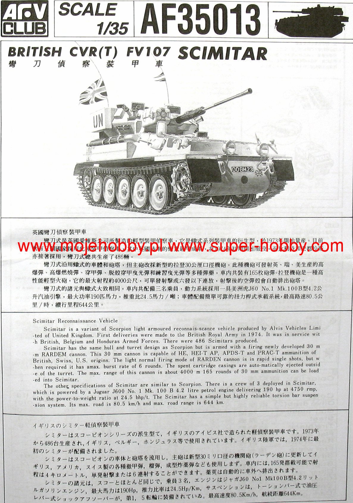 The FV107 Scimitar is a British tracked reconnaissance vehicle, sometimes classified as a light tank, from the post-war and modern era. The first vehicles of this type entered the line in the British Army in the 1970s. Initially, the drive was provided by a single Jaguar J60 engine, and now a Cummins 6BTA with 190 HP. The maximum speed on the road is 81 km / h. The armament currently consists of a single 30mm RARDEN cannon and one 7.62mm machine gun. The FV107 Scimitar was developed and manufactured at Alvis facilities in Coventry for use by the British Army. The vehicle is externally identical to the FV101 Scorpion, but has a different main armament (instead of the 76mm cannon, it has a 30mm cannon) and is also used primarily for reconnaissance and reconnaissance tasks. The FV107 Scimitar vehicles in the course of service underwent numerous modernizations, including replacement of drive units or improvement of electronic equipment. The main foreign recipients were Belgium (which withdrew the FV107 Scimitar from service in 2004) and now is Latvia. The FV107 Scimitar vehicles took part in the Falklands War (1982), in the First and Second Persian Gulf Wars (1990-1991 and 2003).