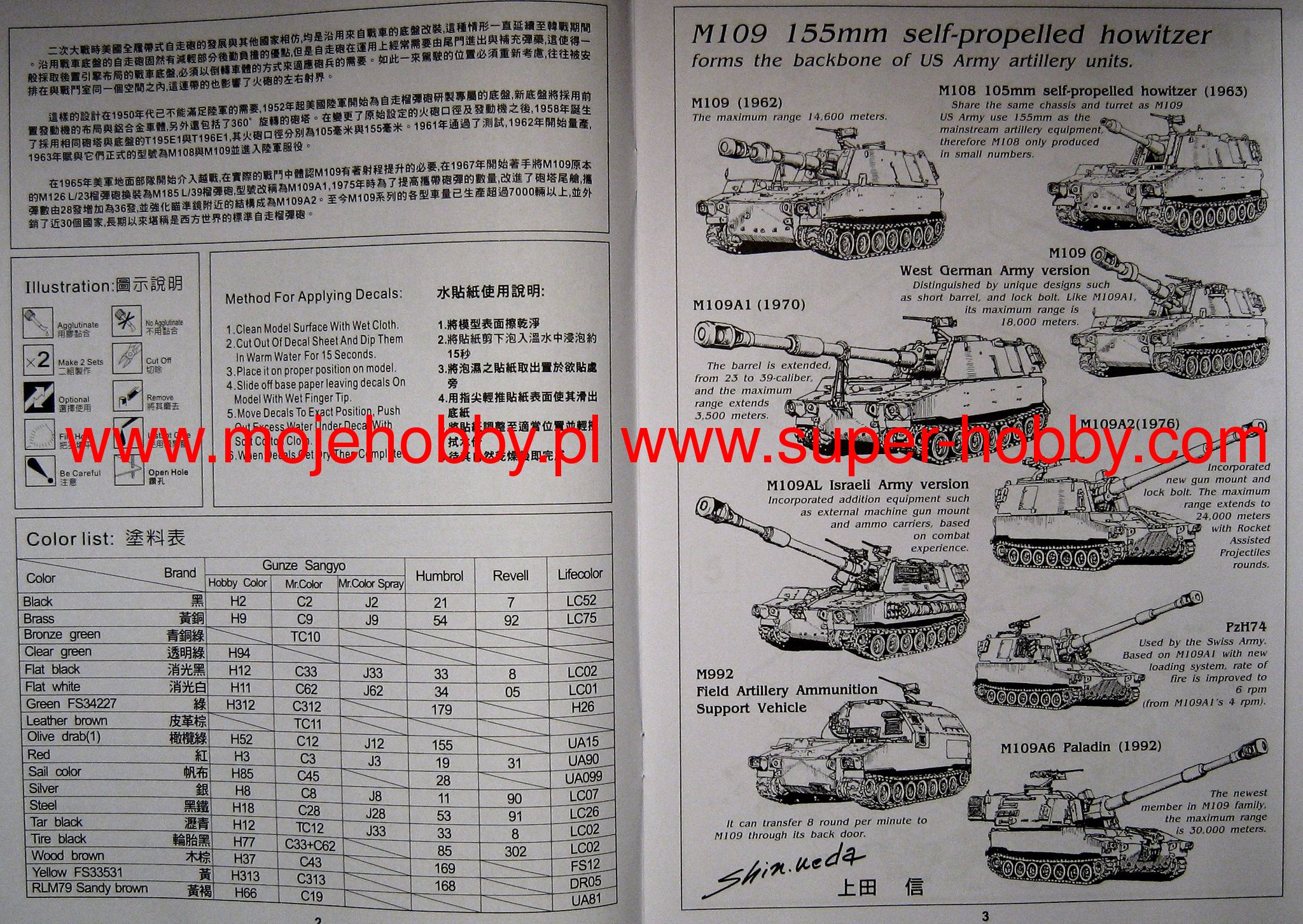 The M109 is a modern American self-propelled gun. The first prototypes of the car were built in the 1950s, and serial production started in 1962 continues to this day. It is estimated that currently in all armies of the world there are about 4,000 copies of this weapon. The M109 is powered by an engine Detroit-Diesel Model 8V-71T with 405 HP. The platform version (M109) is armed with a single 155 mm M126 howitzer and one 12.7 mm M2 machine gun. The M109 was created to replace the M44 self-propelled gun in the line. When designing the new structure, emphasis was placed on the highest possible mobility, low failure rate, and the readiness of the structure for improvements was assumed (except for a radical change of the main armament). All these goals were met, and the M109 proved to be an effective and reliable weapon. It was also a great export success - the weapon was sold to over 30 countries around the world! During the long series production, many development versions of the M109 were created. Chronologically, the first was the M109 version, which was equipped with the M126 howitzer with a firing range of up to 14,600 m. M109A2 with greater mobility, a new howitzer (M178) and new electronic systems. Another important development version is the M109A4 with a new 440 HP engine and the M284 howitzer - still 155 mm caliber - but with an effective shot range up to 22,000 m. One of the latest versions is the M109A6 Paladin, which has modern fire control and battlefield management systems, much richer electronic equipment than previous versions and reinforced armor. As already mentioned, the gun self-propelled M109 went to many foreign recipients, including: Brazil, Greece, Spain, Israel, Pakistan, Portugal, West Germany and Great Britain. The M109 also took part in many armed conflicts, such as the Vietnam War (1964 / 1965-1975), the Yom-Kippur War of 1973, the Iraqi-Iranian War of 1980-1988 and Operation Desert Storm of 1990-1991.