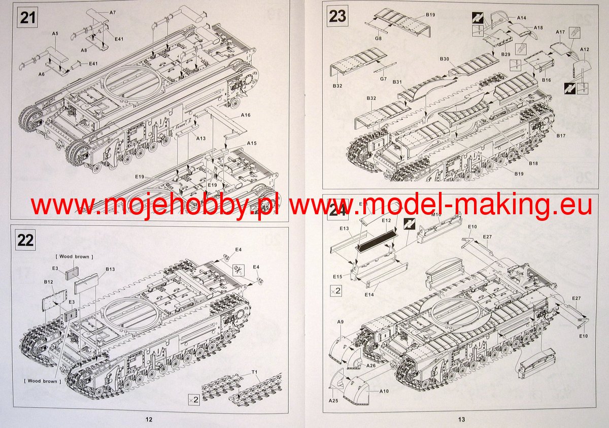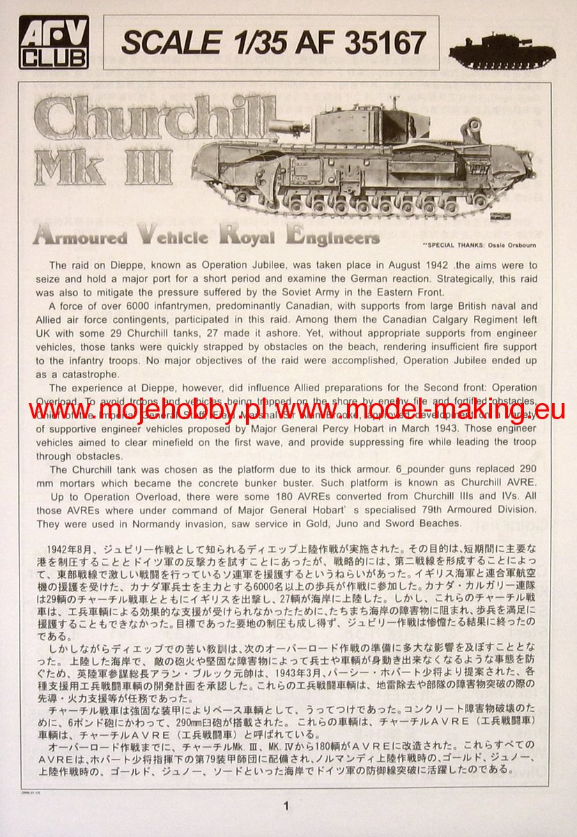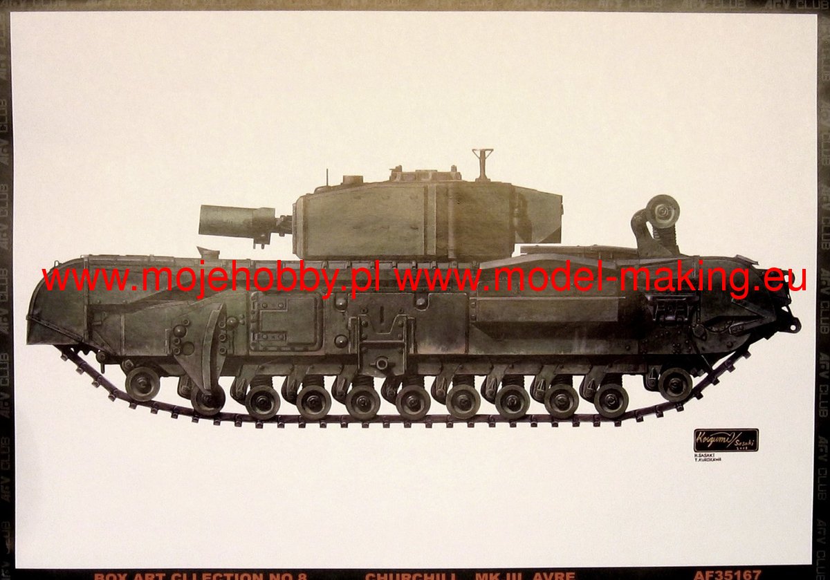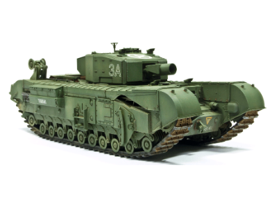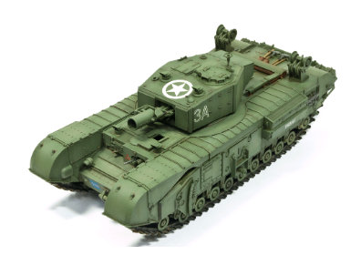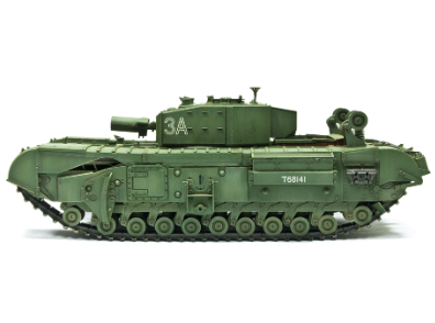 The Churchill A22 was a British heavy infantry tank of the Second World War. The first prototypes were built in 1940, and serial production was carried out in the period 1941-1945. In total, about 7,400 copies of this tank of all versions were produced, which makes it one of the most produced British tanks during the Second World War. Churchill it was powered by an engine Bedford 350 hp. The armament of the vehicle is - depending on the version - a single 40mm, 57mm or 75mm cannon or a 95mm howitzer and two 7.92mm Besa machine guns. Tank Churchill was constructed on the basis of a modified design of the A20 tank, which was built before 1939. Due to the huge losses in equipment suffered by the British army in the French campaign in 1940, the new vehicle was quickly put into mass production. It turned out to be a big mistake, because the first versions of the tank Churchill were underdeveloped, emergency and not very friendly to their crews. However, by 1942 most of the tank's defects revealed in the course of its operation had been removed and it turned out that the Churchill was quite a successful design. It had strong armor, good ability to overcome terrain obstacles and a low silhouette that facilitated the camouflage of the car. The disadvantages were poor armament and low top speed - only 13 km / h in the field! A dozen or so versions of this tank were made in the course of serial production. Chronologically, the first was the Churchill I, armed with a 2-pounder 40 mm gun in the turret and 76.2 mm howitzer in the hull of the vehicle - but it was highly underdeveloped and had a high failure rate. Churchill III soon followed - it had only the new 57mm ROQF 6-pounder gun in the turret and better armor. The version IV was very similar to version III - the most widely produced version, differing only in the method of turret production. Another major change came with the Churchill VII version, which received a 75mm main gun and clearly reinforced frontal armor. There was also a version VIII with the main armament of the 95 mm caliber howitzer in the turret. Specialized versions of Churchill also appeared. One of the more interesting ones is the Churchill AVRE, armed with a powerful 290 mm Petard mortar and designed to destroy enemy fortifications, or the Churchill Crocodile with a flamethrower at the front of the hull. Churchill tanks were sent to the USSR as part of the Lend-and-Lease program, and they were also used by the Canadian army and the Polish Armed Forces in the West (PES).