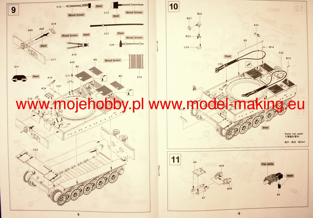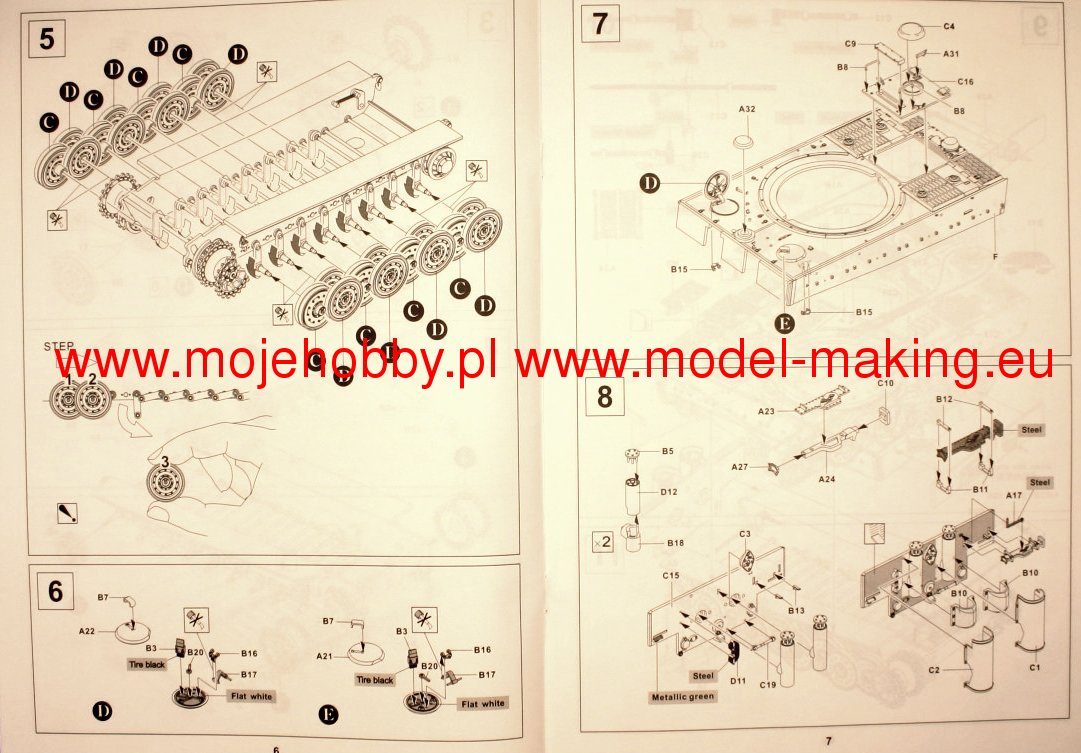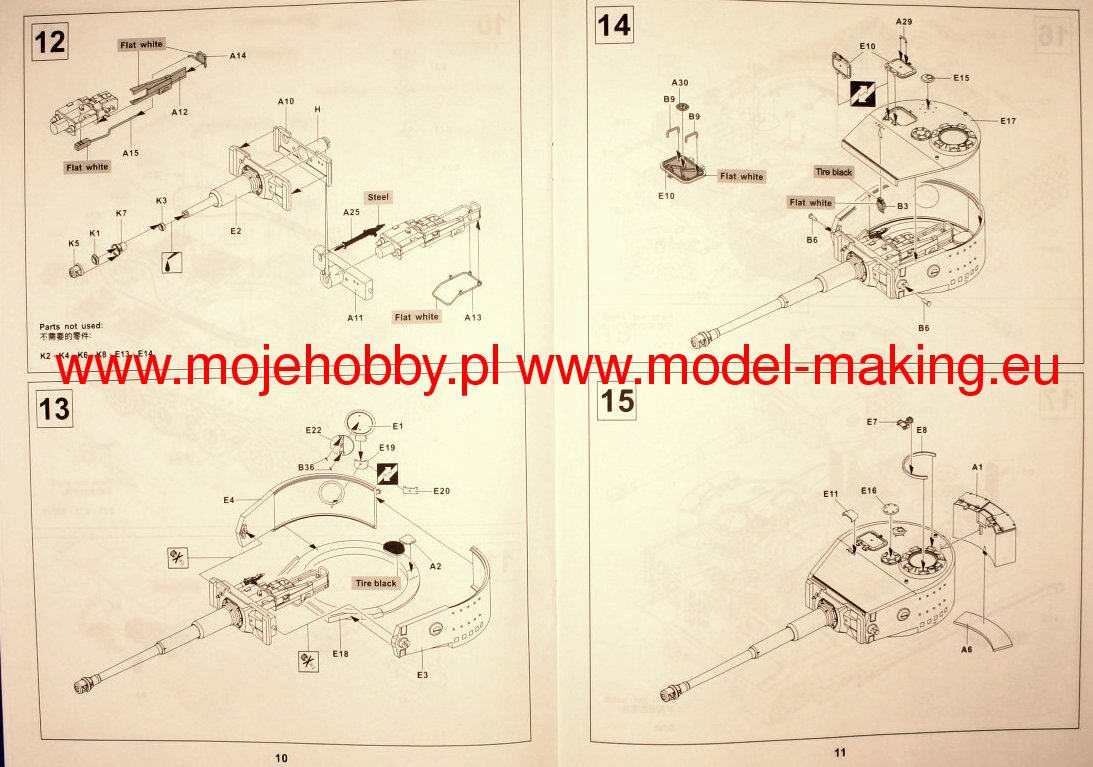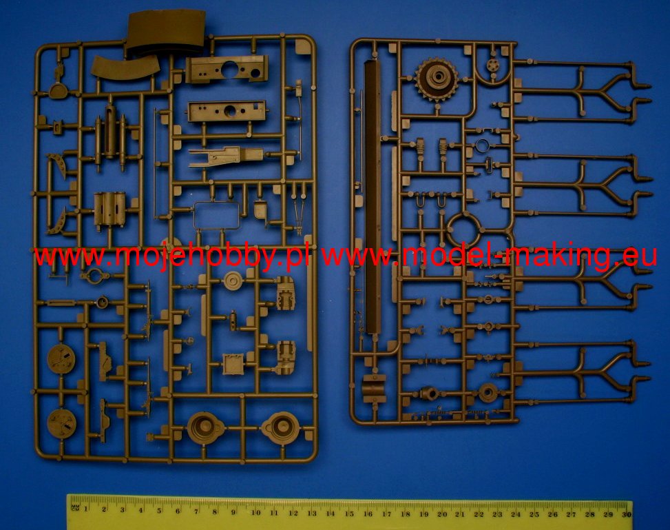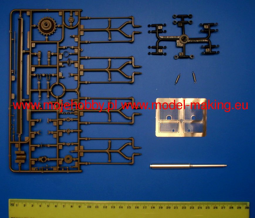 The Pz.Kpfw VI (Sd.Kfz.181) Tiger is a German heavy tank from World War II, one of the most famous combat vehicles of that time. The command of the German Panzerwaffe had the idea of creating a heavy tank from the beginning of the war, but the first attempts in the form of the centuries-old Neubaufahrzeuge tank turned out to be unsuccessful. In 1939 and 1940 they were conducted ineffectively, but after the clash with the T-34 and KW-1 on the eastern front, work on the new heavy tank sped up. On April 20, 1942, the prototype of the new tank, under the designation VK 4501 (H), underwent field trials in the presence of Adolf Hitler and was put into mass production shortly after. The first production versions were designated Pz.Kpfw VI Ausf.H1 (later Ausf.E). In the course of production, in the years 1942-1945, the tank was systematically modified by, for example, adding Feifell dust filters, different placement of headlights, modernization of optical equipment, changes to the commander's turret, etc. The drive was provided by a Maybach HL230 P45 12-cylinder carburetor engine with a capacity of 700 HP. The Pz.Kpfw VI tank, although it did not have such a contoured front hull as the T-34 or Pantera, was a heavily armored vehicle (frontal armor up to 120mm), armed with a very effective KwK 36 L / 56 88mm gun, which earned the reputation of being the most effective tank of the Second World War. It was a vehicle much better than the Allied M4 or Churchill and the Soviet T-34/76. He could also easily fight the IS-2 or M-26, surpassing them with the effectiveness of the main armament. On the other hand, the Pz.Kpfw VI had some disadvantages - first of all, it was extremely time-consuming to produce and had a very complicated suspension. In the later period of the war, the quality of the Tiger's armor also deteriorated, which resulted from the lack of access to the molybdenum deposits by the German economy. Despite these drawbacks, the Tiger on the battlefields proved to be a very effective weapon. He successfully fought in Tunisia, the Kursk Arch, Normandy and on the Eastern Front. Technical data: length (with a barrel): 8.45m, width: 3.7m, height: 2.93m, engine power: 700KM, weight: 56.9 t, range (on the road): 100km, maximum speed (on the road) ): 38 km / h, armament: 1 88 mm KwK 36 L / 56 gun, 3 7.92 mm MG 34 machine guns.