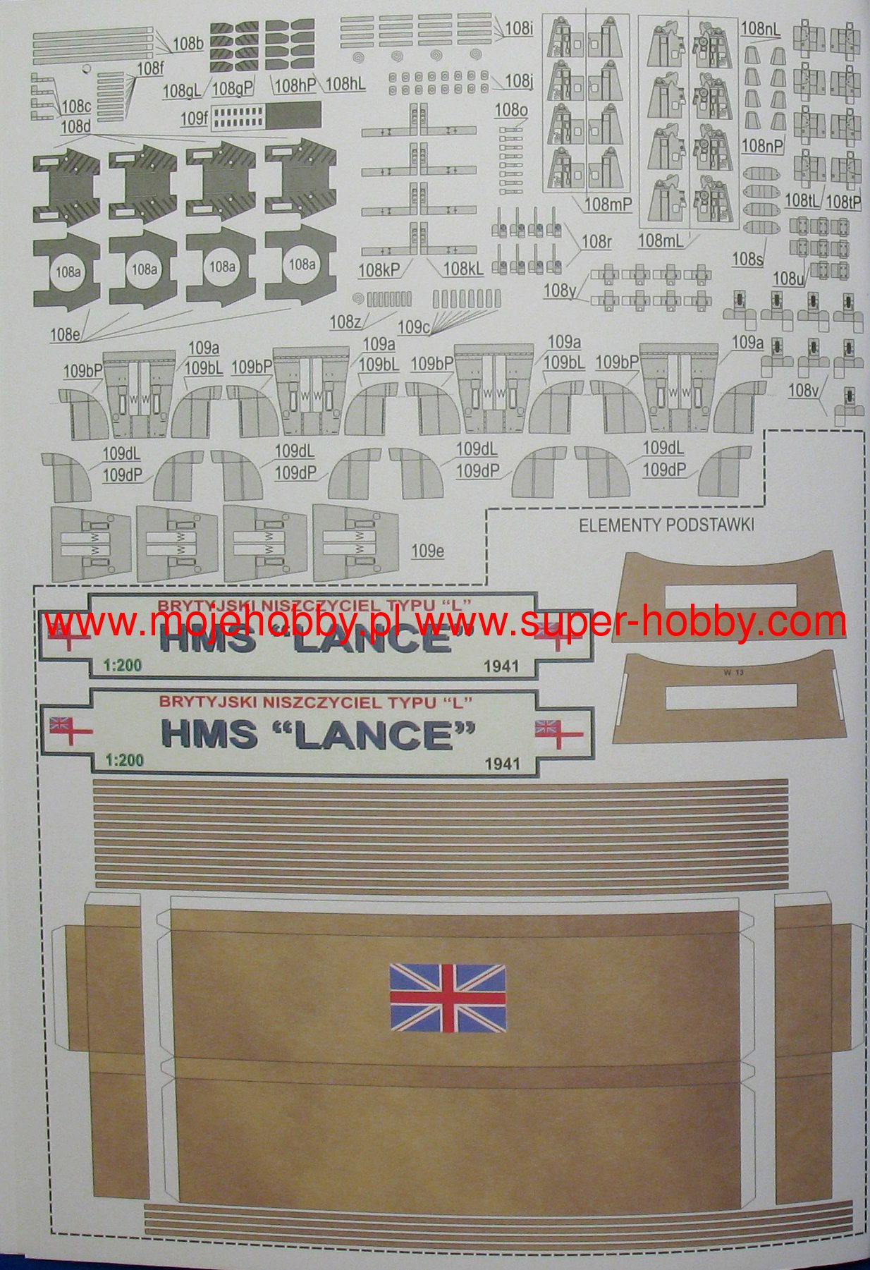 HMS Lance (G87) was a British WWII destroyer. The keel for this unit was laid in 1939, and the launch took place in November 1940. The total length of the ship at the time of launching was 110.5 meters and a width of 11.2 meters. The displacement reached approx. 1,900 tons, and the maximum speed was approx. 36 knots. The armament at the time of the launch consisted of eight 102 mm guns in four twin turrets, one 40 mm gun and eight 533 mm torpedo tubes. HMS Lance was one of the eight L-class destroyers (often referred to as the L / M-class). However, along with two other destroyers, it was a peculiar subtype within that class. HMS Lance was relatively heavily armed with anti-aircraft artillery, and at the same time had relatively strong artillery armament. It had - in relation to other L-class destroyers - a changed shape of the fore superstructure and a part of the aft superstructure. HMS Lance had a short but turbulent combat trail. In May 1941, the ship participated in the tracking down and sinking of the battleship Bismarck. Later, he covered convoys on the route Great Britain - Gibraltar, and in October 1941 he was transferred to Malta and joined the so-called Force K, where he successfully takes part in numerous actions against the Italian Regia Marina. In January 1942, he sheltered one of the British convoys sailing in the Mediterranean Sea. The unit was seriously damaged as a result of Italian air raids on Malta in April 1942. The unit was later towed to Great Britain, but after learning about the damage on the ship, it was decided to dismantle it and from 1944 the ship was gradually scrapped.