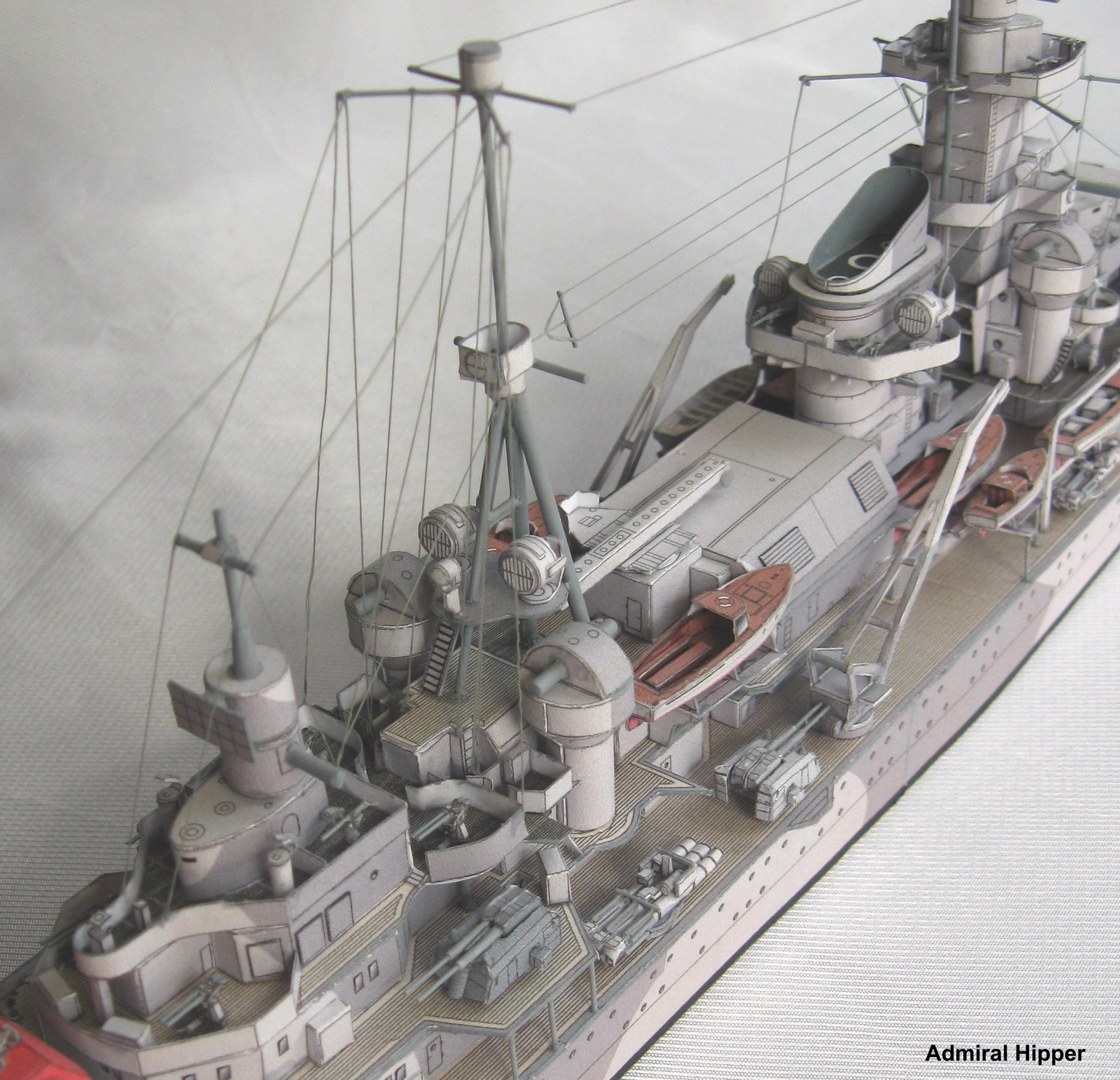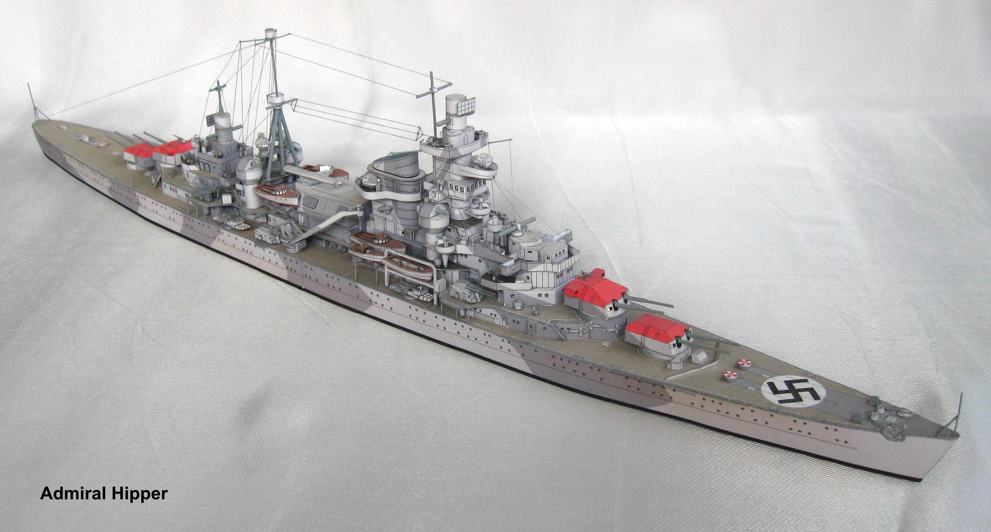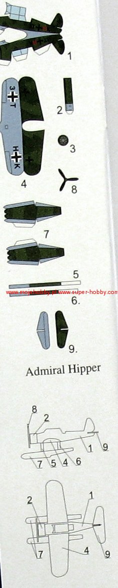 Admiral Hipper was a German heavy cruiser, the keel of which was laid in 1934 and launched in July 1935. The cruiser entered the rope service of the German Navy (German Kriegsmarine) in February 1937. The ship was 206 m long, 21.8 m wide, and had a full displacement of 18,400 tons. The maximum speed of the Admiral Hipper cruiser was around 32-33 knots. The main armament was 8 203 mm guns in four twin turrets, and the secondary armament included: 12 105 mm guns or 17 40 mm cannons. The Admiral Hipper was the first ship of the type to bear the same name - the Admiral Hipper. Cruisers of this type were ordered in order to significantly strengthen the Kriegsmarine's heavy forces. They emphasized the greatest possible autonomy, and the artillery armament was rather typical of heavy cruisers of the late 1930s. The cruiser Admiral Hopper underwent its baptism of fire in April 1940, when it supported German landings in Norway. From the second half of 1940, it was used against British merchant ships. In March 1942 he was transported to Norway and from there he acted against British and Soviet Arctic shipping. On December 31, 1942, he took part in the Battle of the Barents Sea. From April 1943, he served in the Baltic Sea, supporting primarily the activities of the German army in the coastal zone. At the beginning of 1945 he was re-routed - this time to Kiel, where he was masked. There, on May 3, 1945, it sank as a result of an air raid by Allied planes.The Blucher was a German heavy cruiser, the keel of which was laid in 1935 and launched in June 1937. The cruiser entered the rope service of the German Navy (German Kriegsmarine) in September 1939. The ship was 206 m long, 21.8 m wide, and had a full displacement of 18,200 tons. The cruiser Blucher's top speed was around 32-33 knots. The main armament was 8 203 mm guns in four twin turrets, and the secondary armament included: 12 105 mm guns or 16 37 mm cannons. The Blucher was the second Admiral Hipper class ship. Cruisers of this type were ordered to significantly strengthen the Kriegsmarine's heavy forces. They emphasized the greatest possible autonomy, and the artillery armament was rather typical of heavy cruisers of the late 1930s. The combat career of the cruiser Blucher was very short and tragic. It was used for the first time in combat in Operation Wesserubung, i.e. the attack on Norway in April 1940. However, in the course of an exchange of fire with Norwegian coastal batteries, the Blucher was seriously damaged, and shortly afterwards successfully finished off by torpedo boats in the Oslo fjord on April 9, 1940. Despite sinking relatively close to the shore, the cruiser dragged from 600 to about 1,000 people to the bottom with it.