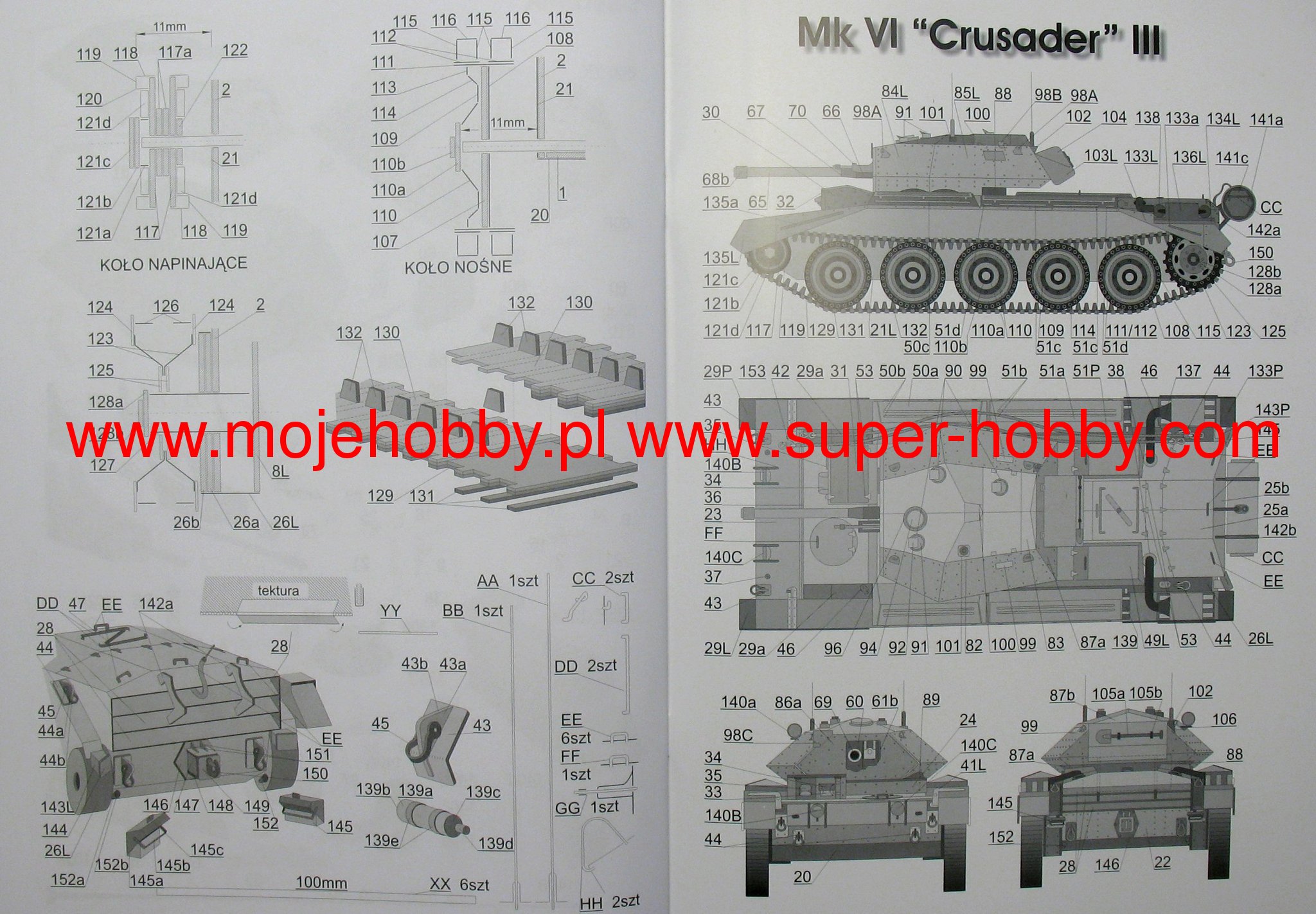 The Crusader was a British tank of the Second World War. The first prototypes were built in 1939, and serial production continued in 1940-1943. In total, about 4,900 copies of this tank were built. Crusader was powered by an engine Nuffield Liberty Mk II with 340 hp. The vehicle was armed with - depending on the version - a single 40mm QF 2-pounder cannon or a single 57mm QF 6-pounder cannon and two 7.92mm and 7.7mm machine guns. Tank Crusader was constructed as a successor to the failed Convenanter A13 car. First of all, the new tank was more carefully designed, which meant it had a much lower failure rate than its predecessor. The armor has also been improved. Despite these changes The Crusader, when it entered service, still had too weak armor, and above all, too weak weapons to fight enemy tanks. Its strengths include the aforementioned low failure rate and good mobility. Nevertheless, after the end of the North African campaign (1940-1943) in which the Crusader tanks played a major role, they were systematically and quickly withdrawn from the frontline units. Several versions of this tank were created in the course of serial production. Chronologically, the first was the Crusader I, which was the first mass-produced version of this tank. In May 1942, the Crusader III version made its debut, with a new 57mm gun and 51mm reinforced armor. After 1943, numerous specialist vehicles based on the Crusader chassis were built, such as the Crusader II Gun Traktor or the Crusader III AA Mk. I and II. Crusader tanks found themselves in the Free French, Australian and New Zealand units. They also became part of the equipment of the Polish Armed Forces in the West (PES).