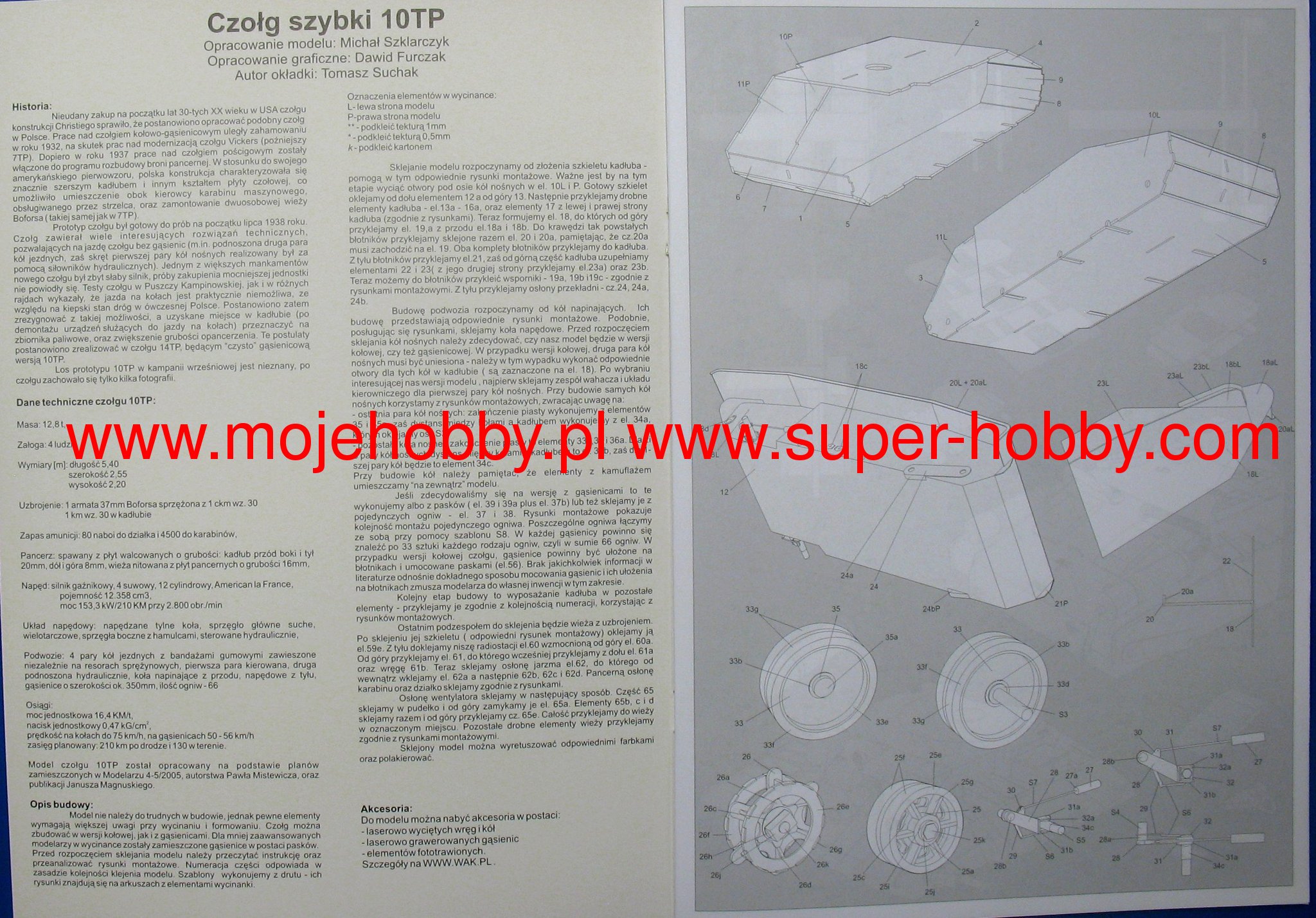 The 10TP is a prototype Polish high-speed tank with a wheeled-tracked chassis from the interwar period and World War II. The drive was to be provided by a single gasoline engine with 210 horsepower, and the target one - 240 hp. The only prototype of the vehicle was probably created in 1937. The car never entered mass production. The tank was armed with a single 37mm Bofors wz. 37 gun and two 7.92mm wz. 30 machine guns. In 1936, analytical and testing work began in Poland on the usability in Polish conditions of tanks with Christie's suspension, i.e. tanks that allowed the vehicle to move on both wheels and tracks. The only vehicle of this type was manufactured at Państwowe Zakłady Inżynierii (PZInż), which was probably subjected to field trials in the period 1937-1939. In the course of these tests, it turned out that the 10TP prototype is a highly emergency vehicle, and the biggest problems were the wheel-track traction. For this reason, the project was discontinued in favor of the 14TP car. Probably the only one built of the 10TP was lost in the course of battles with Germany during the September campaign in 1939.