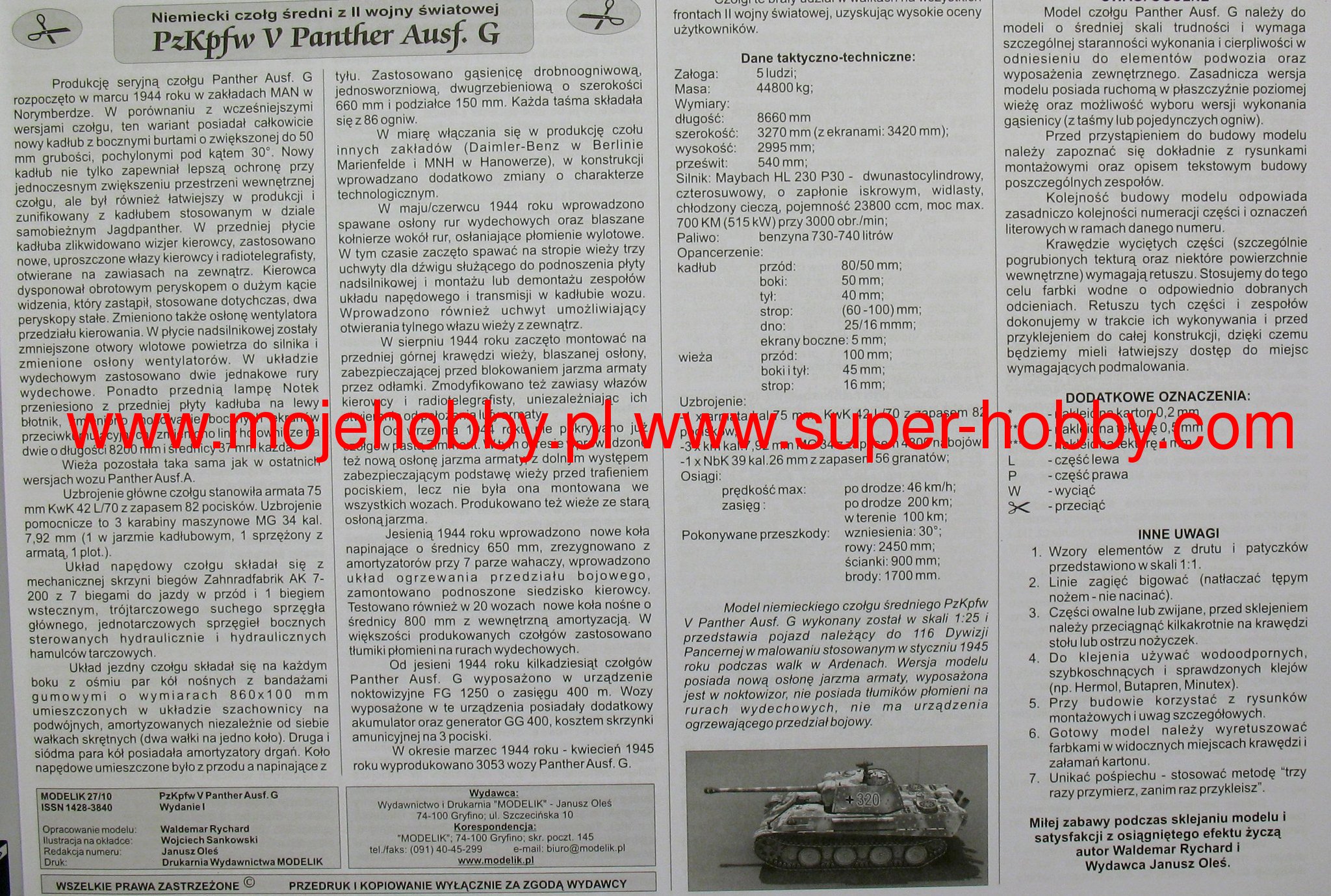 PANTHER AUSF.G NIEMIECKI CZOŁG ŚREDNI Z II WOJNY ŚWIATOWEJ modelik 1/25
