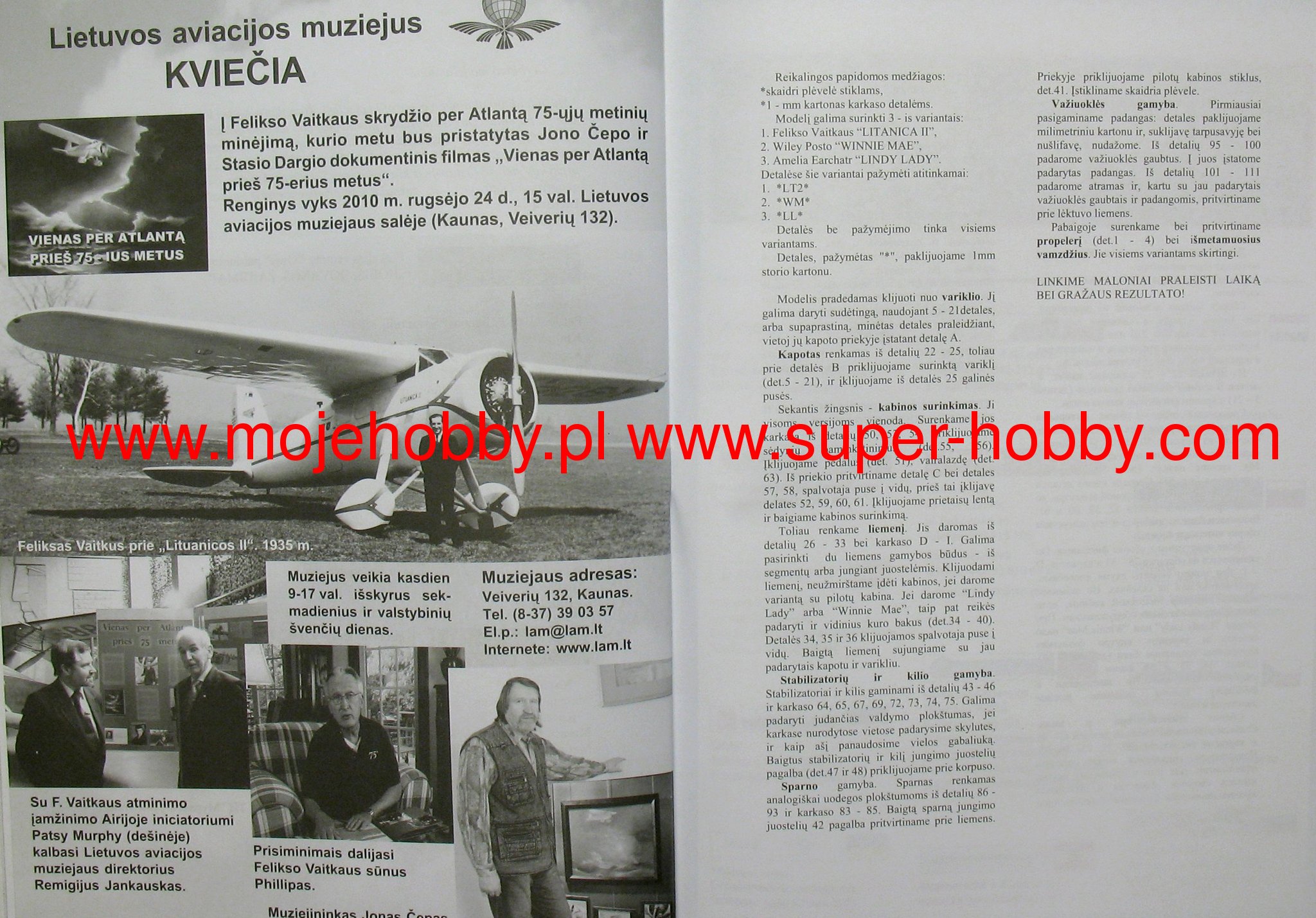 The Lockheed Vega was a single-engine, American high-wing, wooden structure with a fixed landing gear. The drive - in the Vega 5 version - was provided by a single Pratt and Whitney Wasp radial engine with 450 HP. A prototype flight took place in 1927, and serial production began shortly after. About 120 aircraft of this type were built in its course! Lockheed Vega was created as a grassroots initiative of this label, and its designers were John Northrop and Gerald Vultee, who later founded their own aviation companies. The new machine was characterized by refined, for those times, aerodynamics and a very high maximum speed for an aircraft of this class. It was also able to carry 4 to 6 passengers. Several development versions of this aircraft were created in the course of production, for example: Vega 1 (the first production version, powered by the Wright Whirlwind engine), Vega 5 (version powered by the Wasp engine) or Vega 5 A (transport version). The plane of this type was also used by GH Wilkins to fly to the Arctic in 1928The Lockheed DL-1 / Y1C Vega is an American, single-engine, mixed-structure, metal-lined passenger plane with umbrella wings. The flight of the prototype took place in 1927, and shortly thereafter, serial production was started at Lockheed's plant in Los Angeles, which ended with the production of 128 copies. In 1930, the DL-1 was sent to the USAAC for testing. The plane became famous thanks to the Wilkins' flight over the Arctic from Alaska to Spitsbergen on April 22, 1928. Technical data: length: 8.38 m, wingspan: 12.5 m, height: 2.59 m, maximum speed: 298 km / h, maximum range: 885 km , maximum ceiling 5485m.