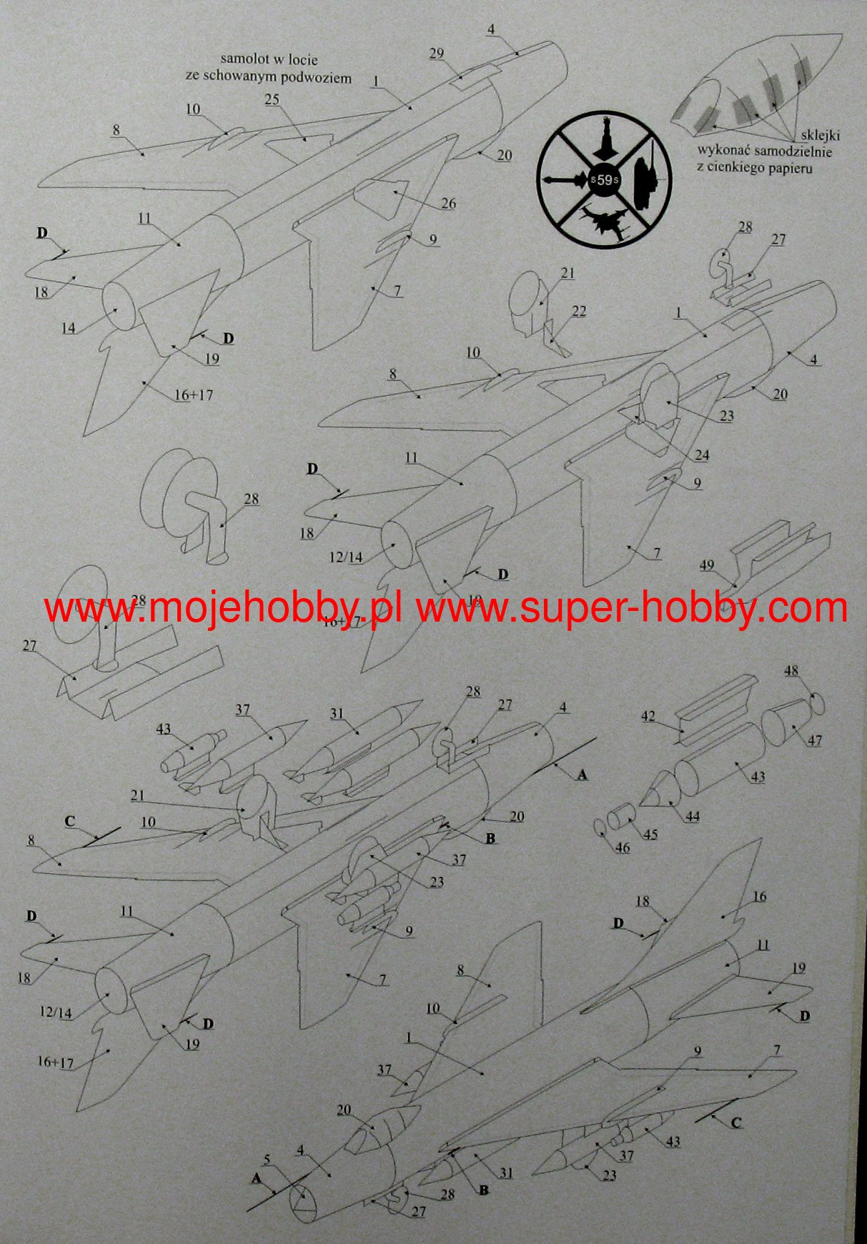 The Sukhoi Su-7 is a Soviet fighter-bomber with oblique wings, full metal structure with a classic tail. The drive was provided by a single Lulka AL-7F1 engine. The flight of the prototype took place on September 8, 1955. It entered the line in 1958. The first production version was the machine designated as Su-7, acting as a fighter plane. However, a very interesting tactical variant of the Su-7B quickly appeared. At the end of the years. 50, the Soviet command promoted the concept of "atomization" and "rocketization" of the battlefield. The main role of carrying atomic charges on the tactical battlefield was to be played by ground-to-ground missiles and barrel artillery, but for the elimination of particularly mobile cells (columns of troops) or requiring a precise strike (nuclear weapons of the enemy, secured command and communication stations), it was intended to be used as carrier of a high-speed supersonic plane. Due to the high speed, large payload, "strong" engine and the appropriate range, and equally importantly, the need to quickly put the machine into service (before the Su-7B, provisionally modified Mig-15 / -17 was used for this role), the choice fell on the Sukhoi design. In the mid-1960s, the plane was recommended for serial production of the Suchoja Su-7B, the first units left the production line in the second half of this year. Later, new versions were created, such as the Su-7BM, with additional rocket launch engines, the Su-7UB, i.e. a training version with a two-person cabin, or the Su-7BK or Su-7BKL versions. Technical data: length: 16.8m, wingspan: 8.77m, height: 4.8m, maximum speed: 1.6Ma, climb speed: 152m / s, practical ceiling: 15500m, maximum range: 1450km, armament: permanent- 2 NR-30 30mm cannons, suspended - up to 4000 kg of cargo on 4-6 under-wing pylons.