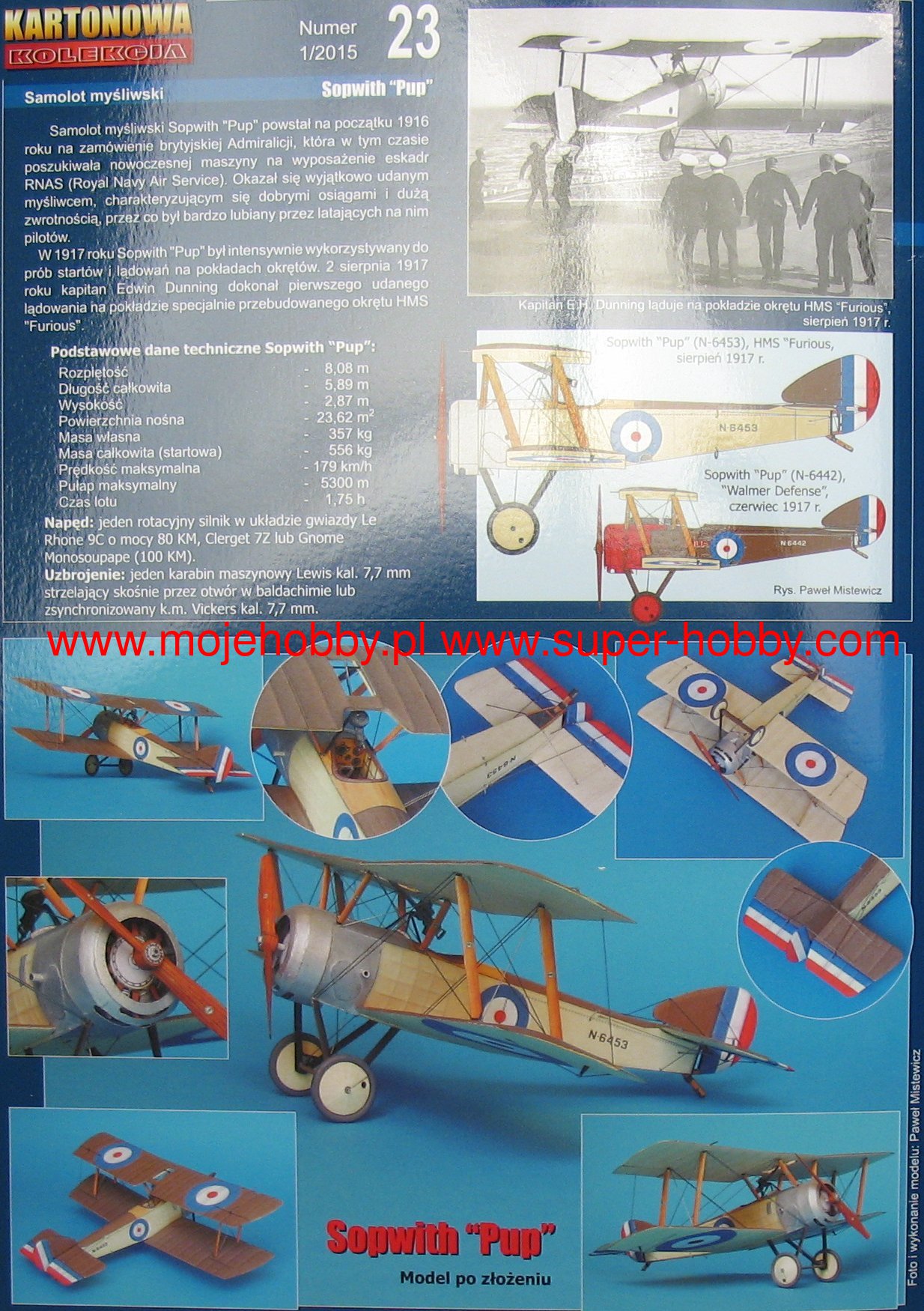 The Sopwith Pup (puppy) was a British fighter in a mixed biplane design with a fixed landing gear from the First World War. The drive was provided by a single LeRhone 9C engine with 100 HP. The prototype flight took place in 1916. In the course of serial production, which lasted in the years 1916-1918, about 1770 copies of this aircraft were made. The armament was one 7.7 mm Vickers machine gun. Sopwith Pup was created on the basis of a sports plane, most often called the Sopwith Sparrow. The new machine was characterized by high maximum speed, excellent piloting qualities and was very maneuverable, becoming an equal opponent for the German Albatros D. III aircraft. The Sopwith Pup planes were withdrawn from the frontline only in mid-1917, and were replaced by an equally successful design - the Sopwith Camel. Pup fighters were used in the period 1917-1918 to combat zeppelins attacking the British Isles. Due to its properties, the Sopwith Pup was also the first plane in history to successfully land on board the ship on August 2, 1917. Sopwith Pup planes are used by the air force of several countries, including Australia, Belgium, Greece and Japan.